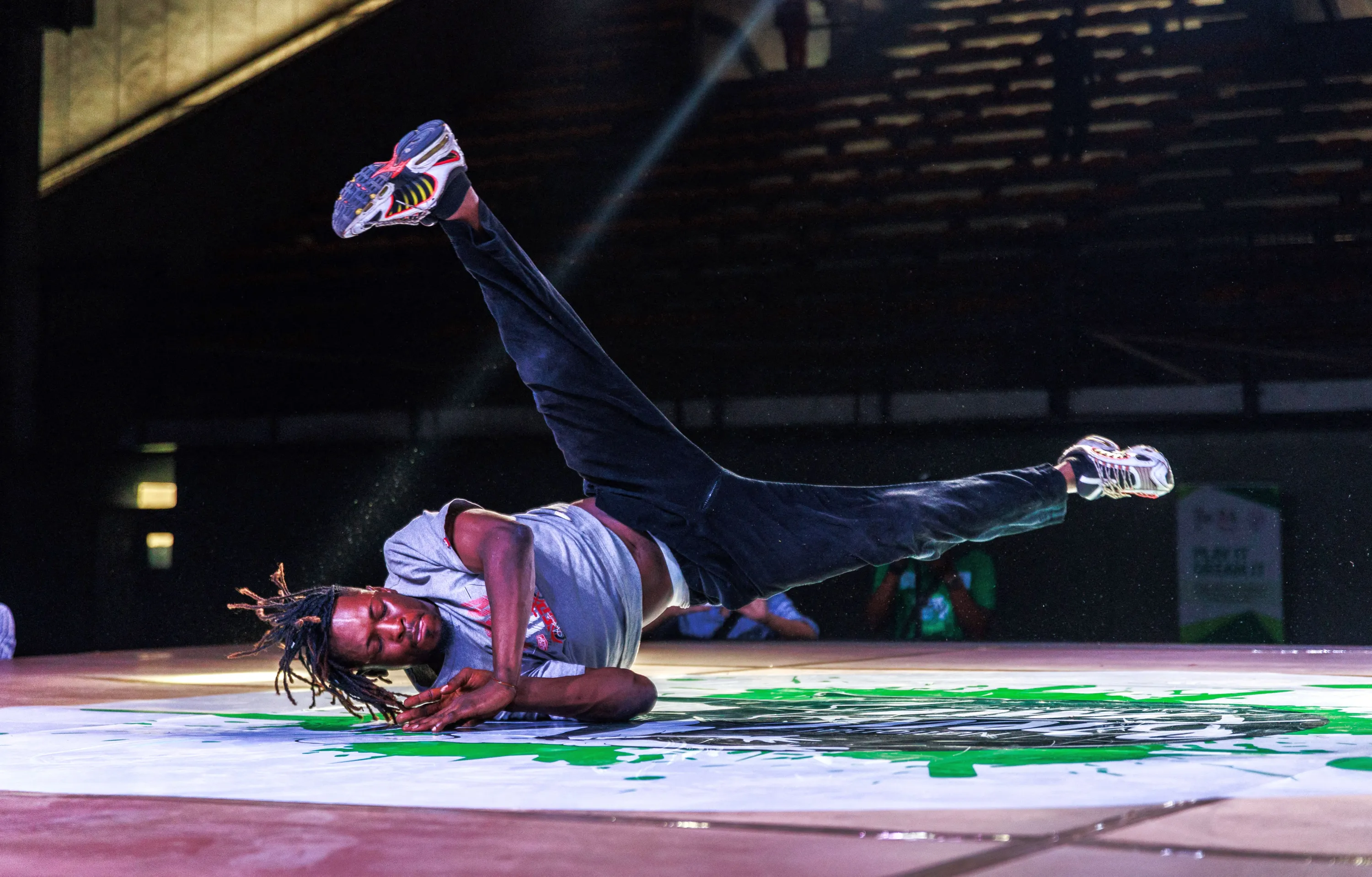 B-boy Metal performs during the National Breakdance Competition held at the National Stadium Surulere in Lagos on January 15, 2024. Breakdancing, or breaking, is making its debut as an Olympic sport this year and Nigeria's competitors have been vying to bring their own distinctive style to the games. (Photo by Benson Ibeabuchi/AFP Photo)