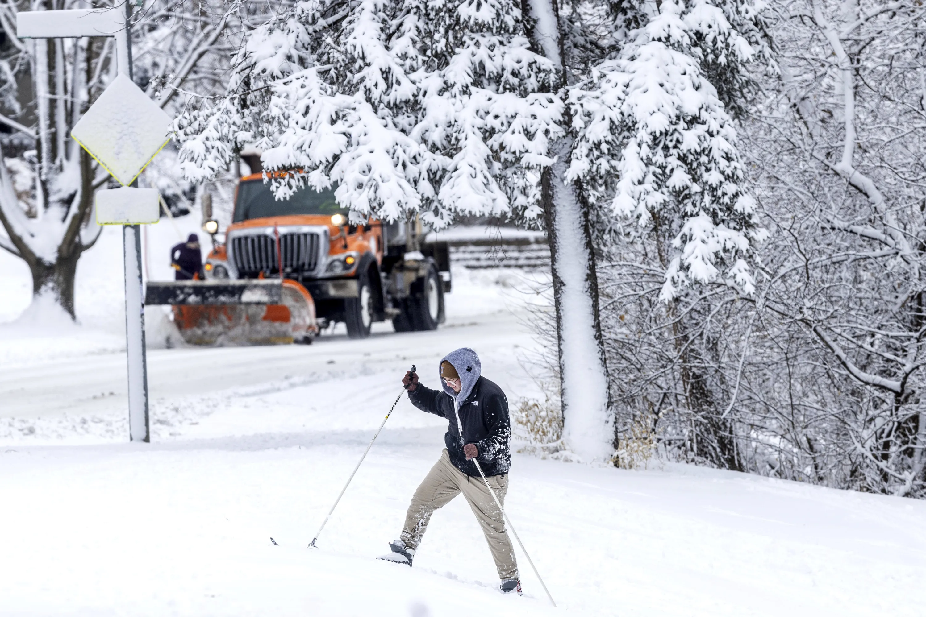 Eli Foxley uses cross-country skis at Elmwood Park in Omaha, Neb., on Tuesday, January 9, 2024. (Photo by Chris Machian/Omaha World-Herald via AP Photo)
