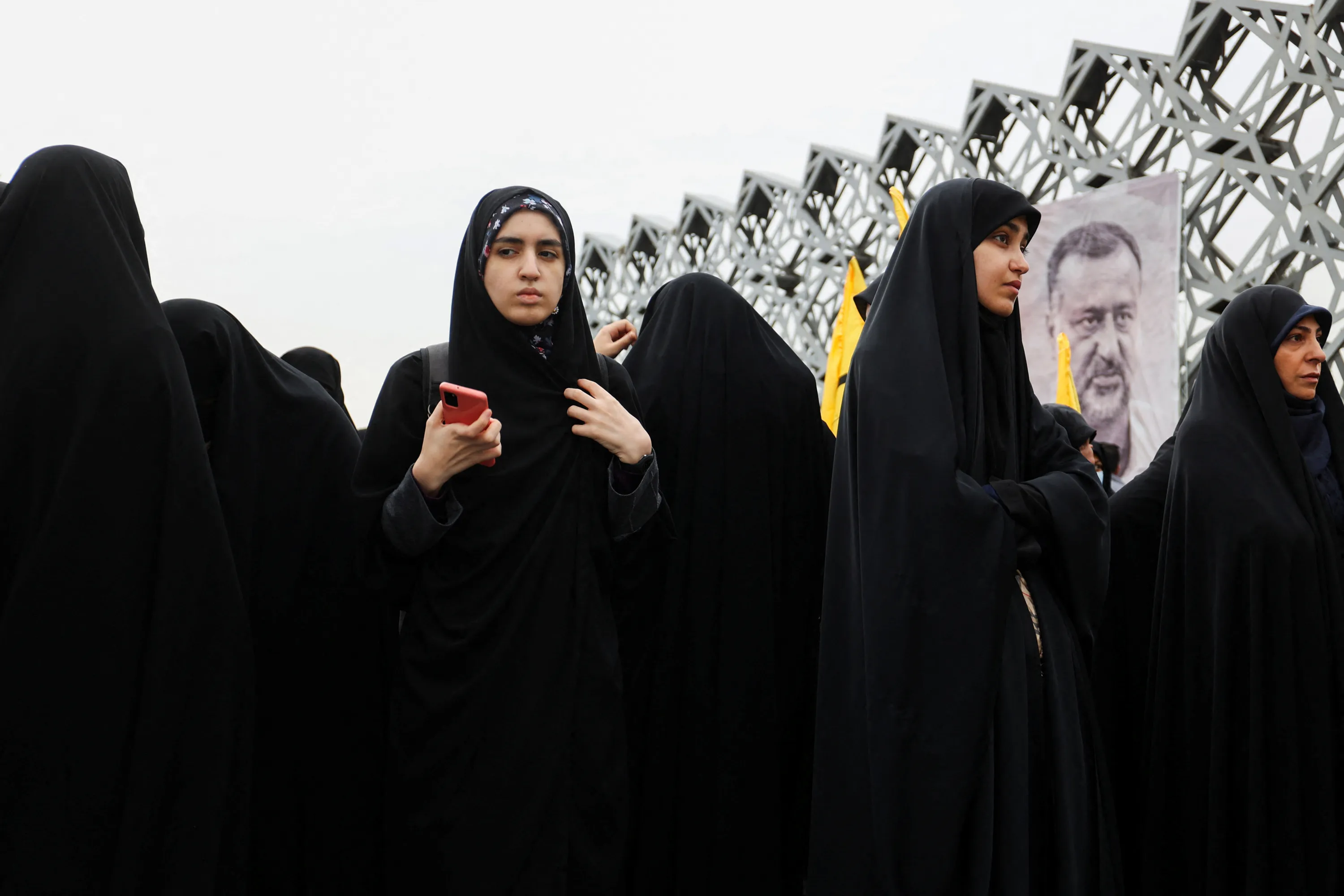 People gather for the funeral ceremony of senior adviser for Iran's Revolutionary Guards, Sayyed Razi Mousavi, who was killed in an Israeli air strike outside the Syrian capital Damascus, in Tehran, Iran on December 28, 2023. (Photo by Majid Asgaripour/WANA (West Asia News Agency) via Reuters)