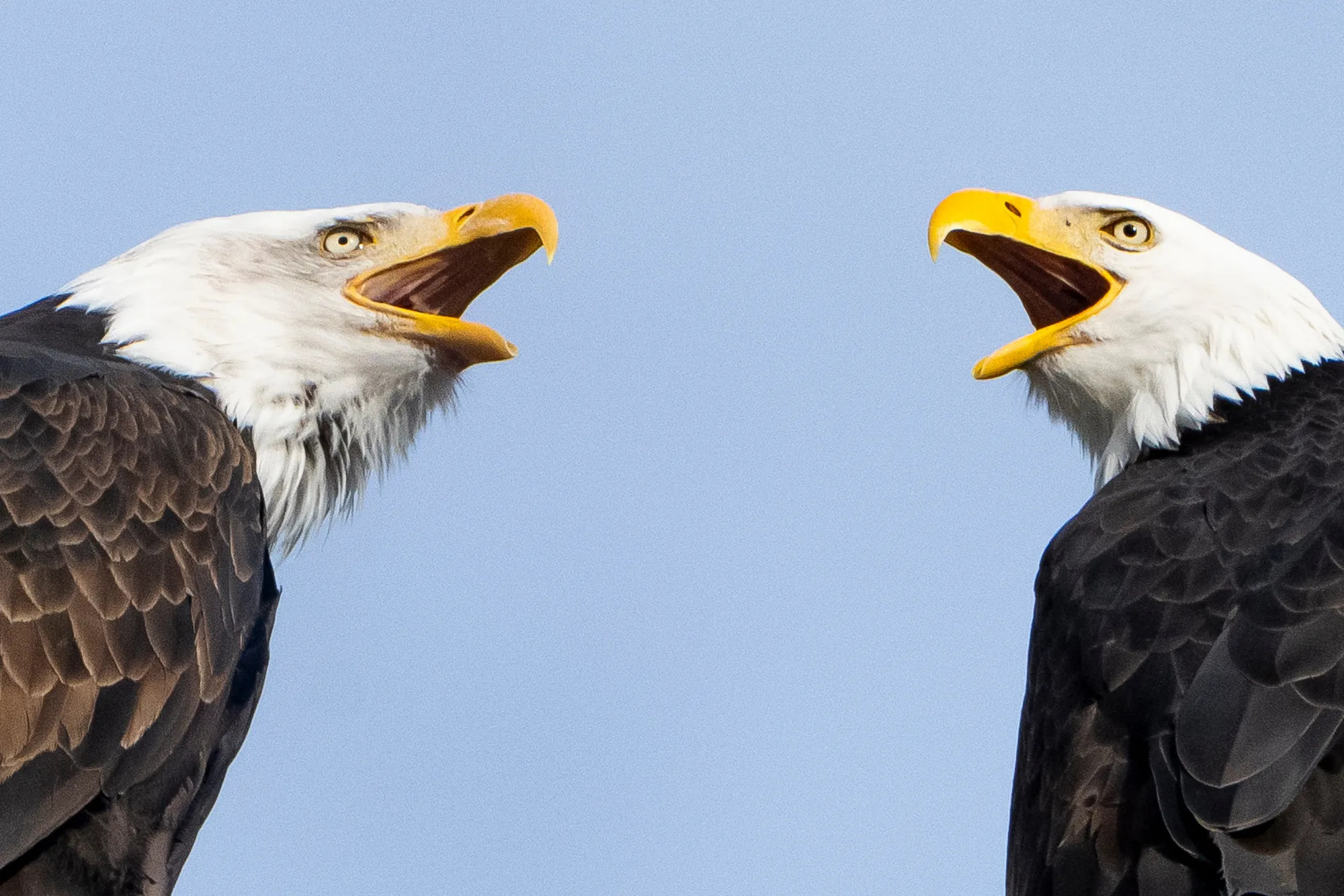A pair of bald eagles call out while resting on a tree next to Union Bay, Tuesday, January 16, 2024, in Seattle. (Photo by Lindsey Wasson/AP Photo)