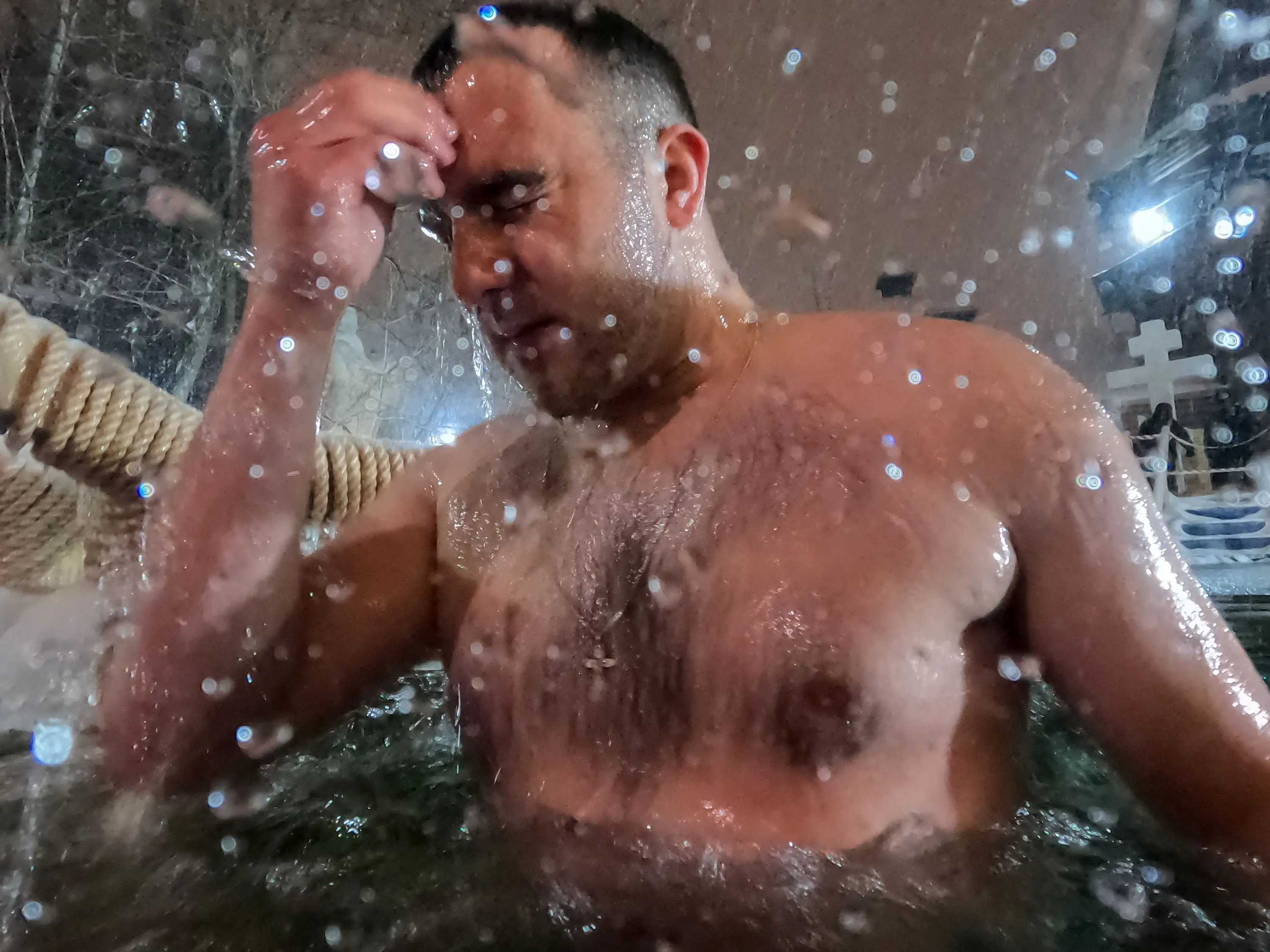 An Orthodox Christian takes a dip in the icy water while marking the feast of Epiphany in Moscow, Russia on January 19, 2024. (Photo by Evgenia Novozhenina/Reuters)
