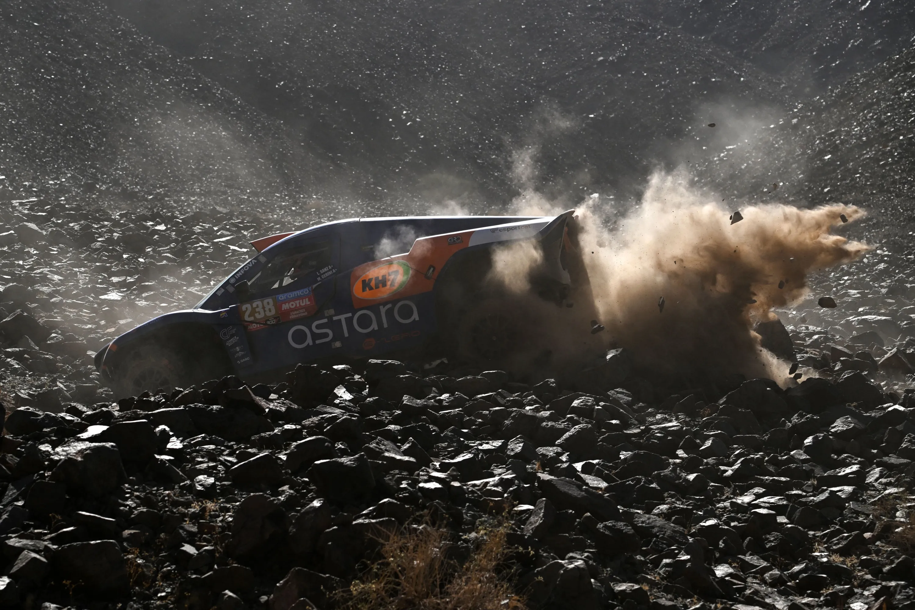 Astara Team's Spanish driver Laia Sanz and her Italian co-driver Maurizio Gerini steer their during the stage 11 of the 2024 Dakar Rally between Al-Ula and Yanbu, Saudi Arabia, on January 18, 2024. (Photo by Patrick Hertzog/AFP Photo)