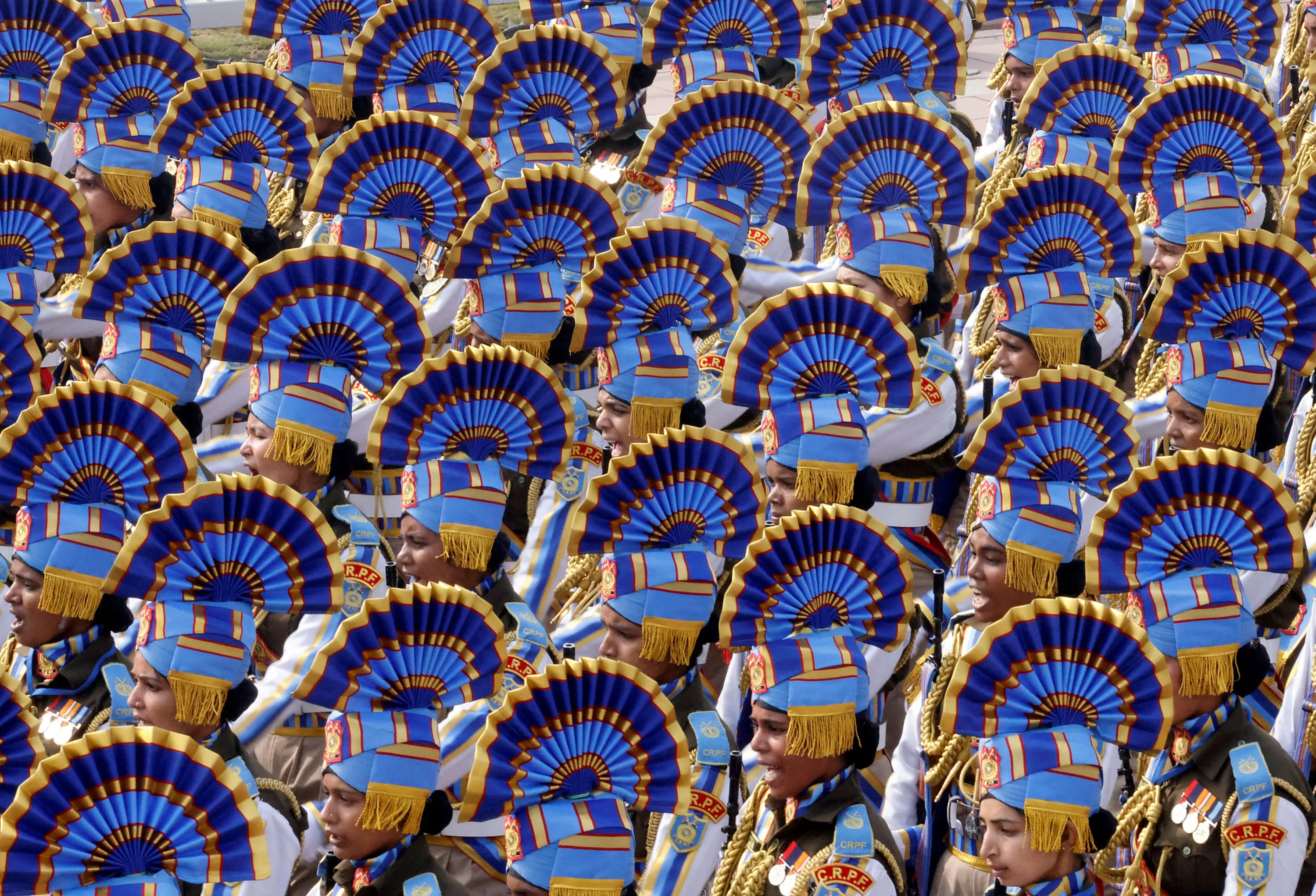 Indian soldiers march during the full-dress rehearsal for the Republic Day parade in New Delhi, India on January 23, 2024. (Photo by Altaf Hussain/Reuters)