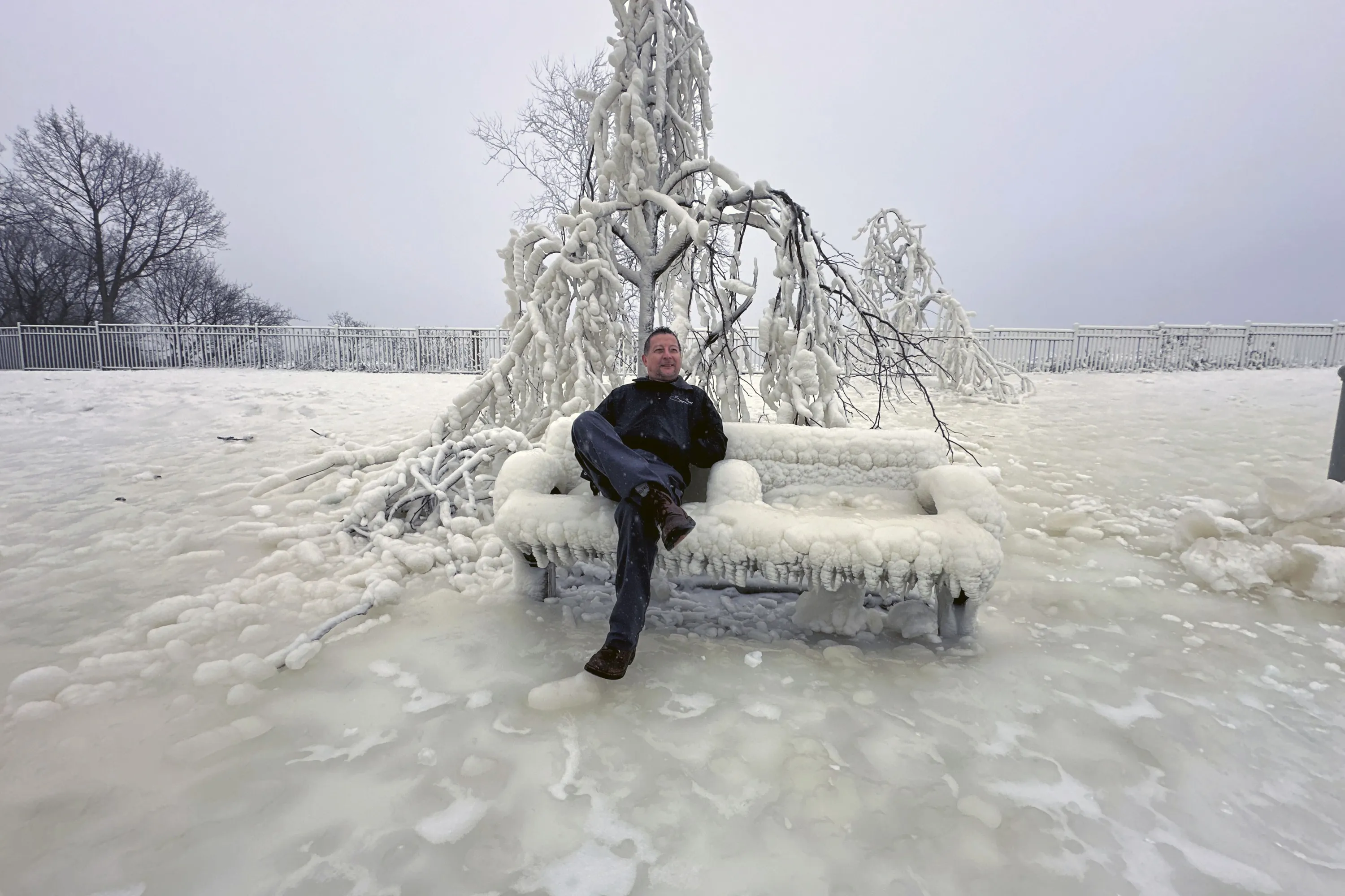 Mist from the Great Falls has created a frozen wonderland around the waterfalls in Paterson, N.J., on Thursday, January 18, 2024. People are braving the subfreezing cold temps and slippery walkways to visit the ice-covered trees, benches and lamposts. (Photo by Ted Shaffrey/AP Photo)