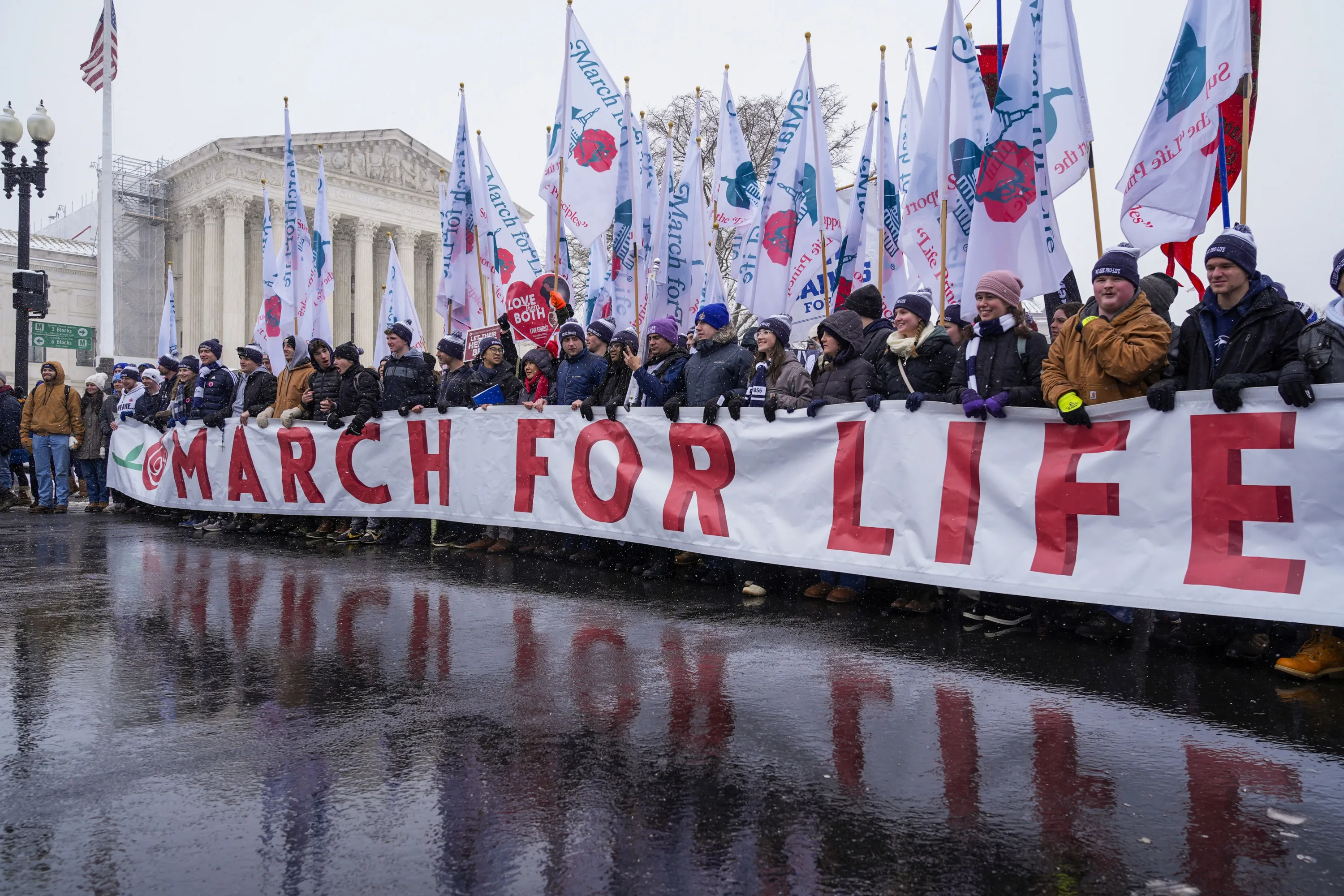 People participating in the March for Life walk past the Supreme Court, Friday, January 19, 2024, in Washington. (Photo by Jacquelyn Martin/AP Photo)