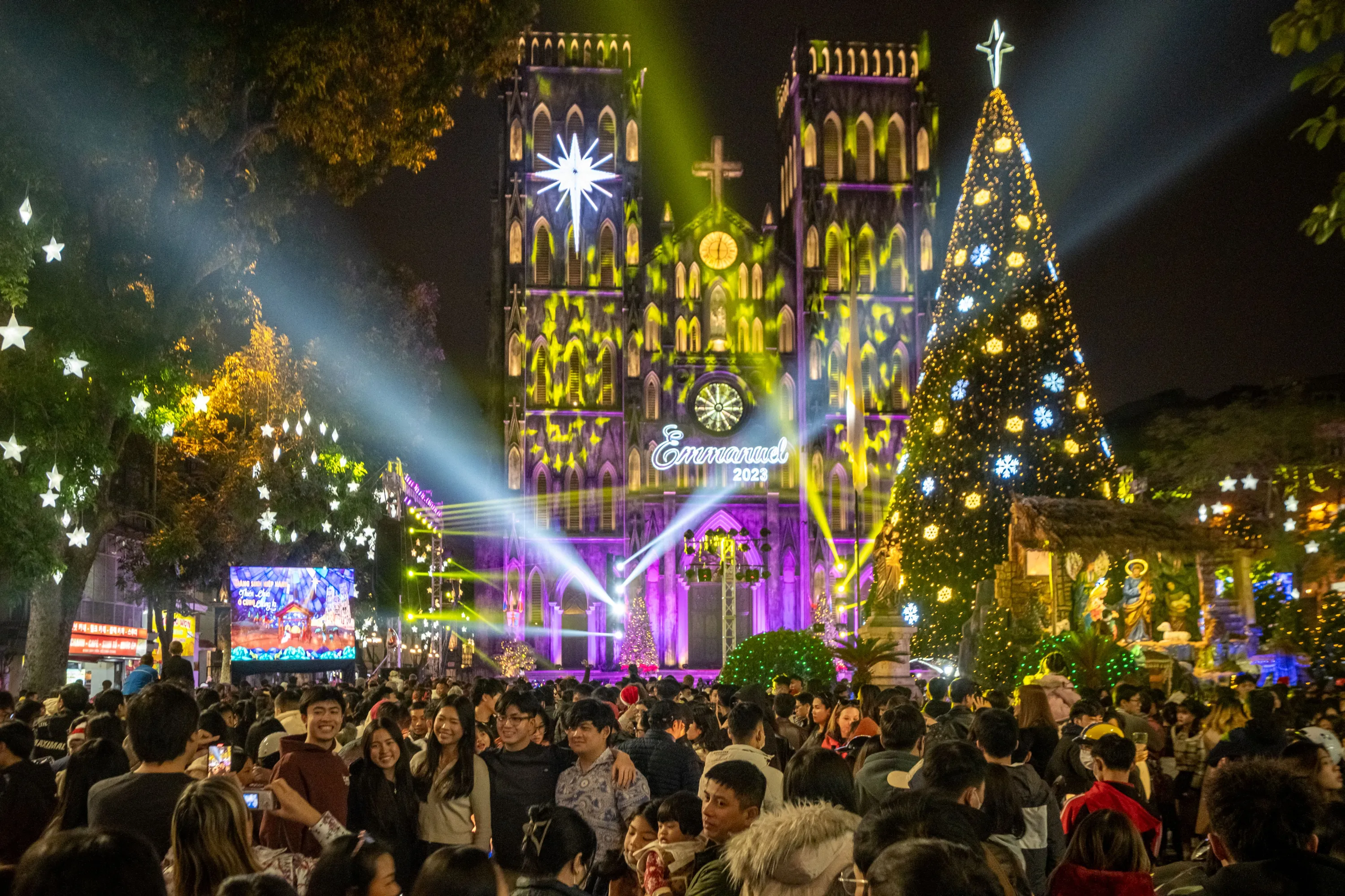 People take part in the Christmas Eve celebration at St. Joseph's Cathedral on December 24, 2023 in Hanoi, Vietnam. As a predominantly Buddhist nation, Christmas is not an official public holiday in Vietnam, but many people celebrate it as both a religious festival and a new cultural tradition. (Photo by Linh Pham/Getty Images)