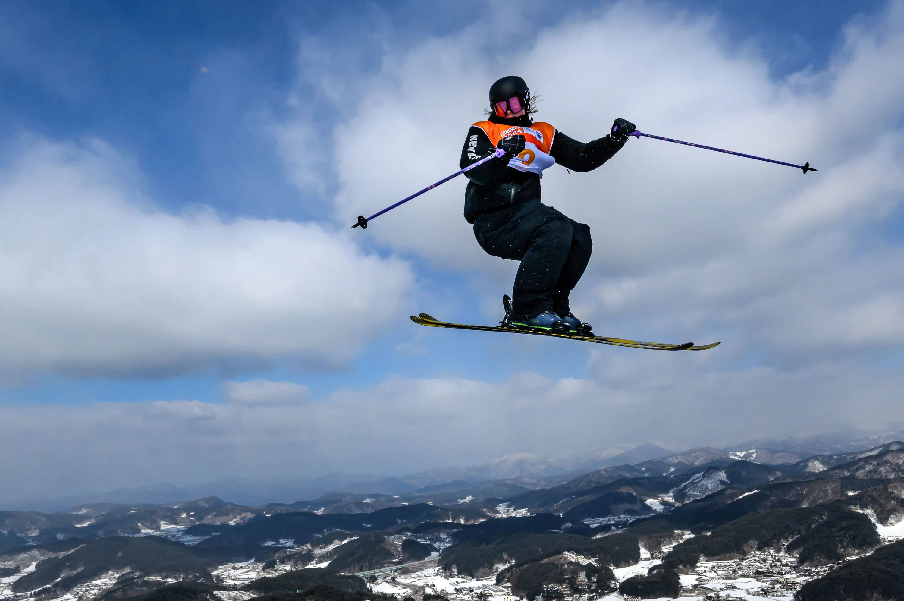 A handout photo made available by the Olympic Information Service OIS/IOC shows Mischa Thomas of New Zealand training ahead of the Freestyle Skiing Women’s Freeski Slopestyle Finals at the Welli Hilli Park Ski Resort, during The Winter Youth Olympic Games, Gangwon, South Korea, 24 January 2024. (Photo by Joel Marklund for OIS/IOC via EPA)