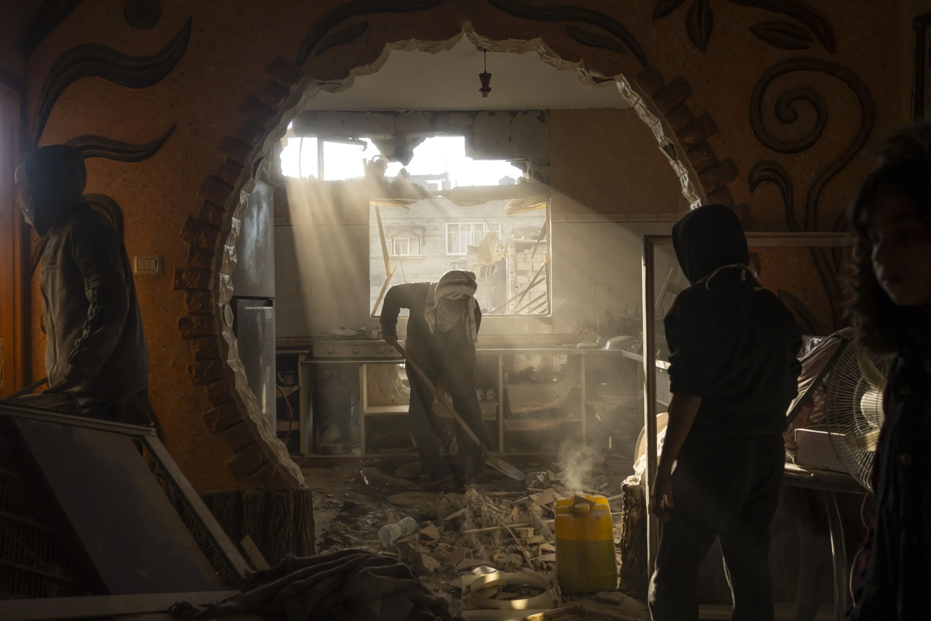 Palestinians look at their neighbour's damaged house following an Israeli strike in Rafah, southern Gaza Strip, Saturday, January 27, 2024. (Photo by Fatima Shbair/AP Photo)