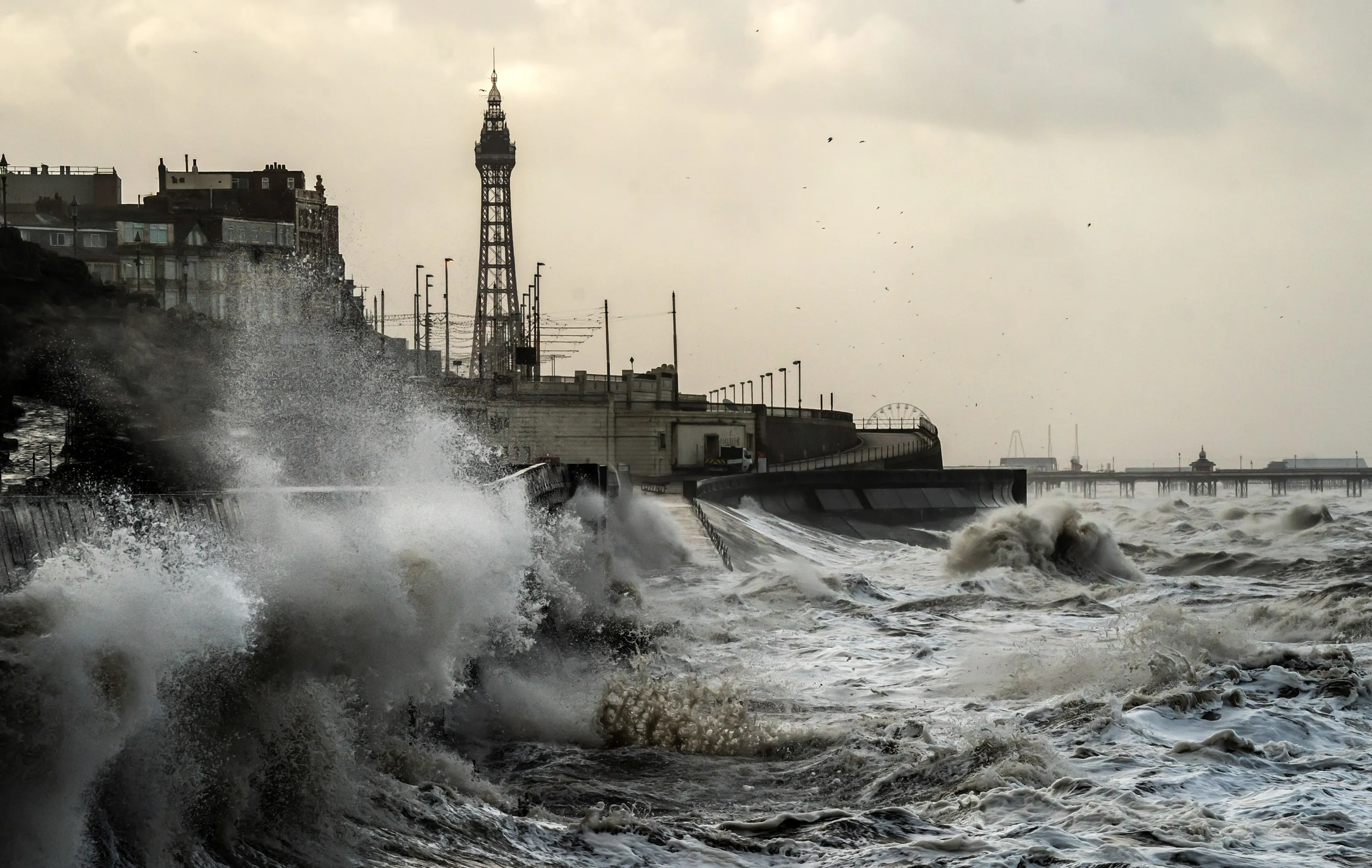 Waves break on the sea front in Blackpool on Monday, January 22, 2024. Thousands of people have been left without power as Storm Isha brought disruption to the electricity and transport networks across the UK. (Photo by Danny Lawson/PA Images via Getty Images)