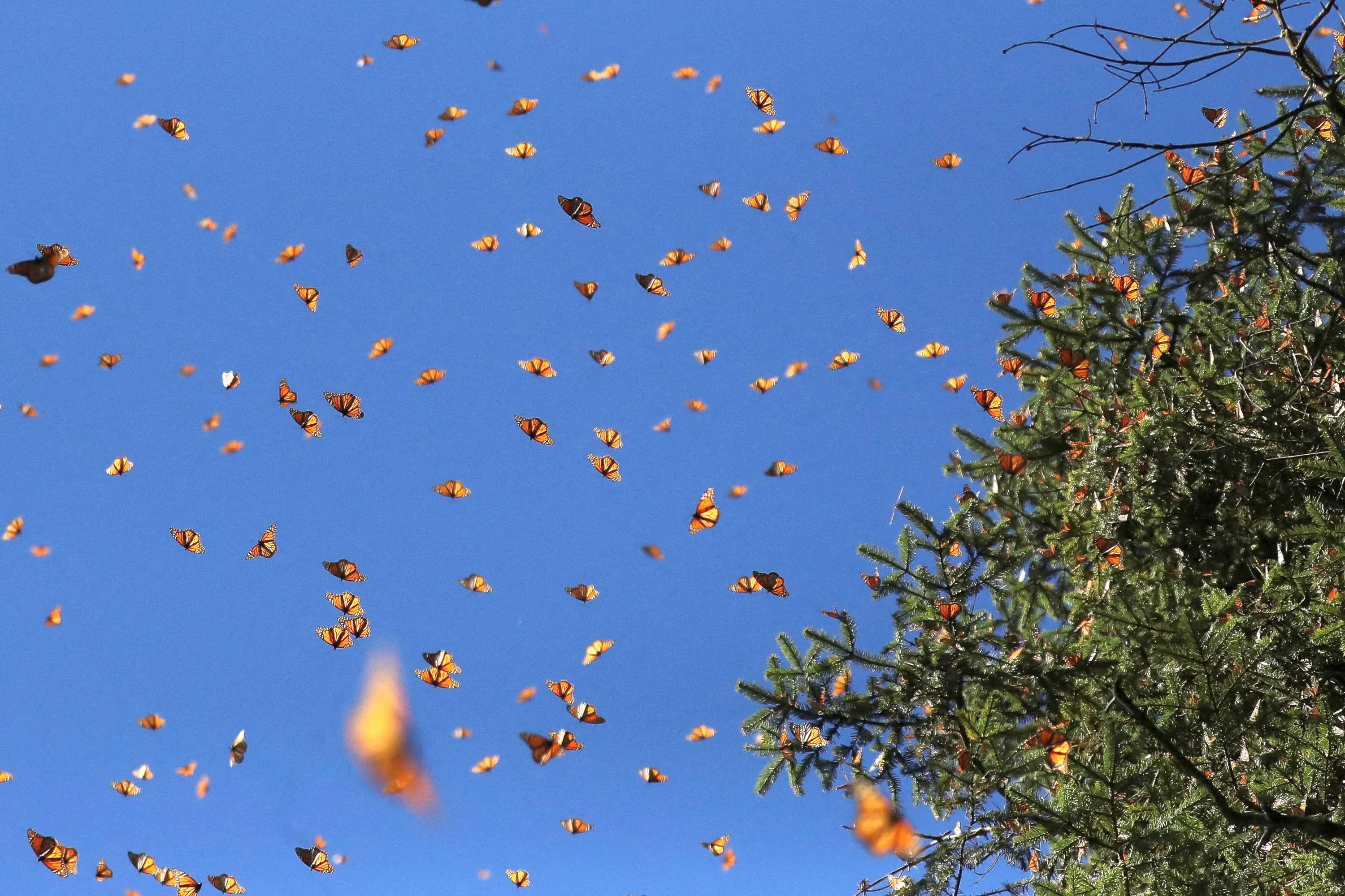 Monarch butterflies fly at the Sierra Chincua butterfly sanctuary in Angangeo, Michoacan state, Mexico on December 3, 2022. (Photo by Raquel Cunha/Reuters)