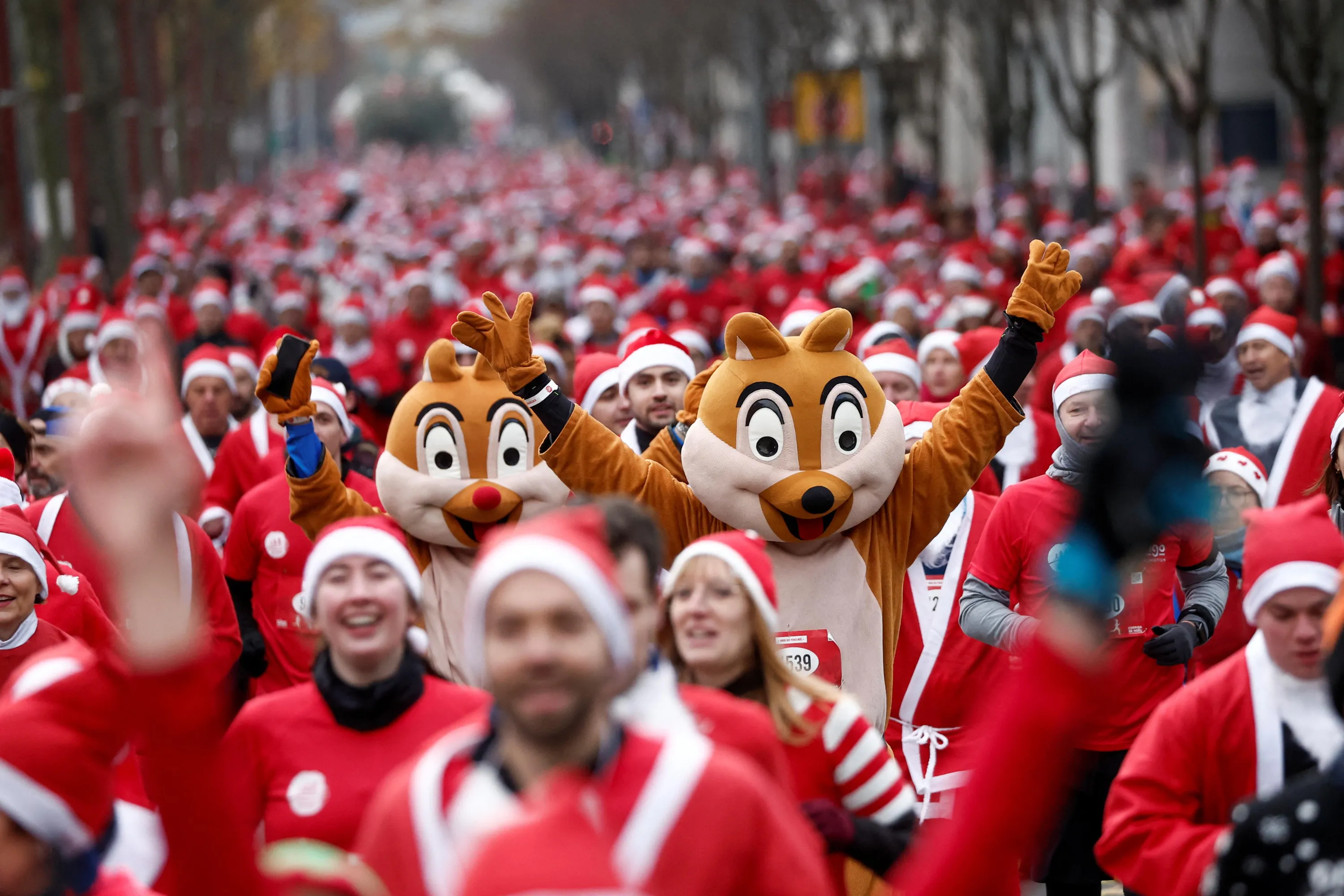 Runners dressed as Santa Claus take part in the Christmas Corrida Race on the streets of Issy-les-Moulineaux, near Paris, France on December 11, 2022. (Photo by Benoit Tessier/Reuters)