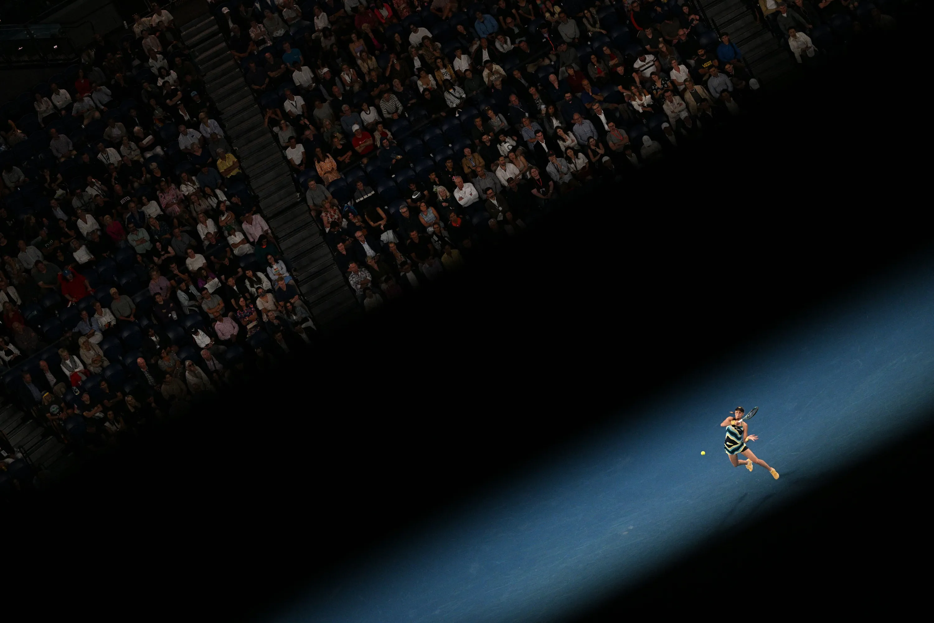 Ukraine's Dayana Yastremska hits a return against China's Zheng Qinwen in their women's singles semi-final match on day 12 of the Australian Open tennis tournament in Melbourne on January 25, 2024. (Photo by Anthony Wallace/AFP Photo)