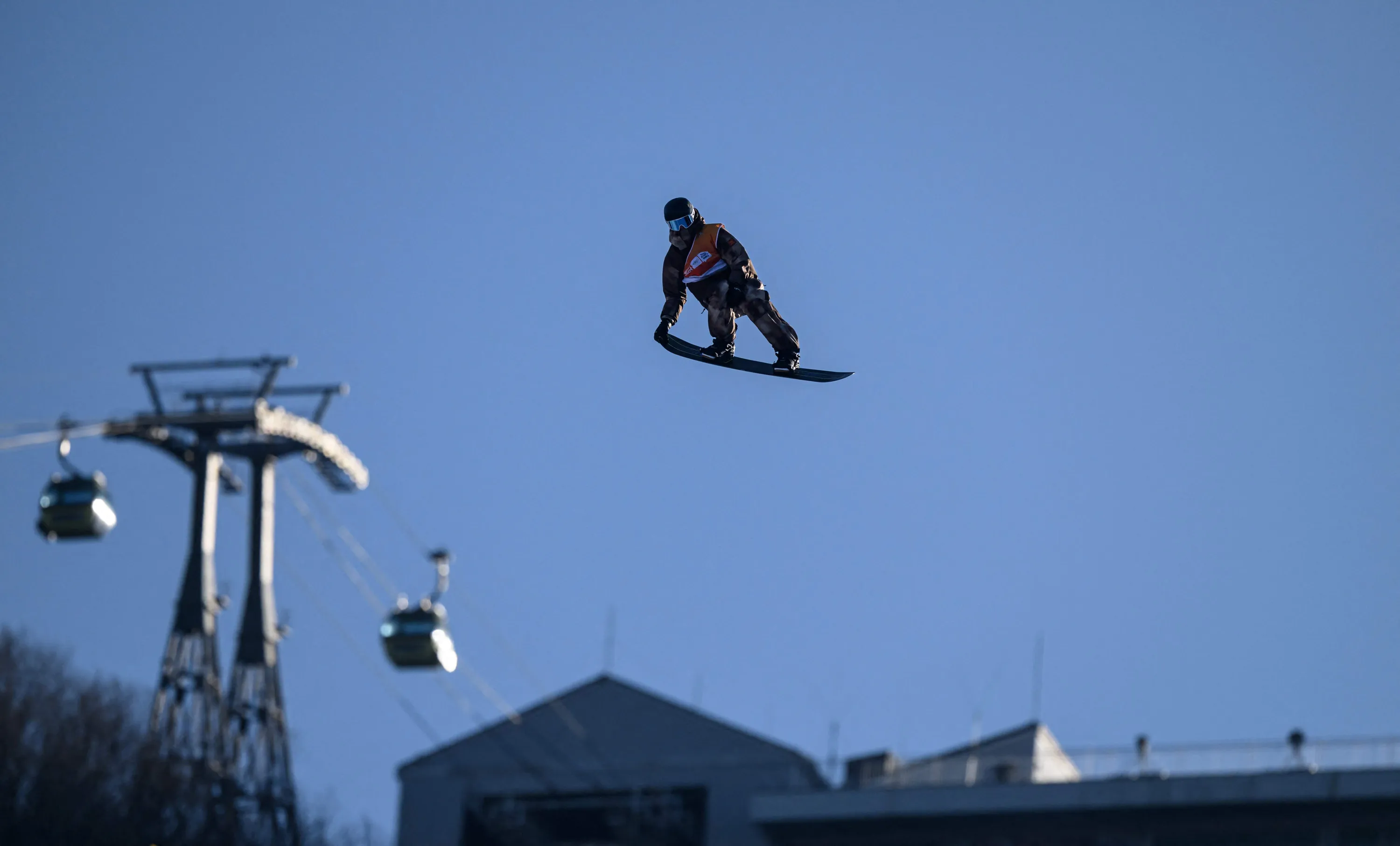 This handout photo taken and received from the OIS/IOC on January 25, 2024 shows France's Romain Allemand competing in his final run of the Snowboard Men's Slopestyle during the Gangwon 2024 Winter Youth Olympic Games in Gangwon. (Photo by Jonathan Nackstrand/OIS/IOC via AFP Photo)