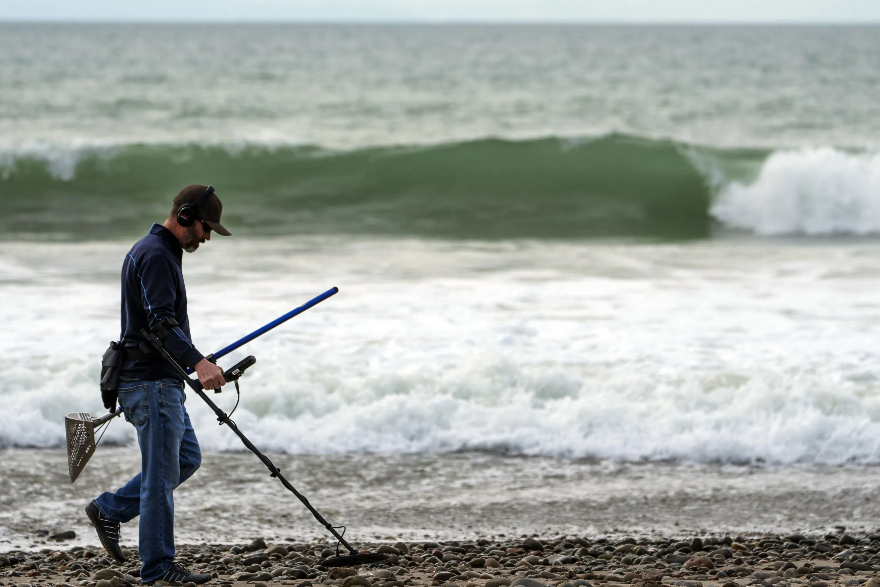 Josh Snider searches for metals with a metal detector on the edge of the beach ahead of storms, Wednesday, January 31, 2024, in Ventura, Calif. The first of two back-to-back atmospheric rivers slowly pushed into California on Wednesday, triggering statewide storm preparations and calls for people to get ready for potential flooding, heavy snow and damaging winds. (Photo by Damian Dovarganes/AP Photo)
