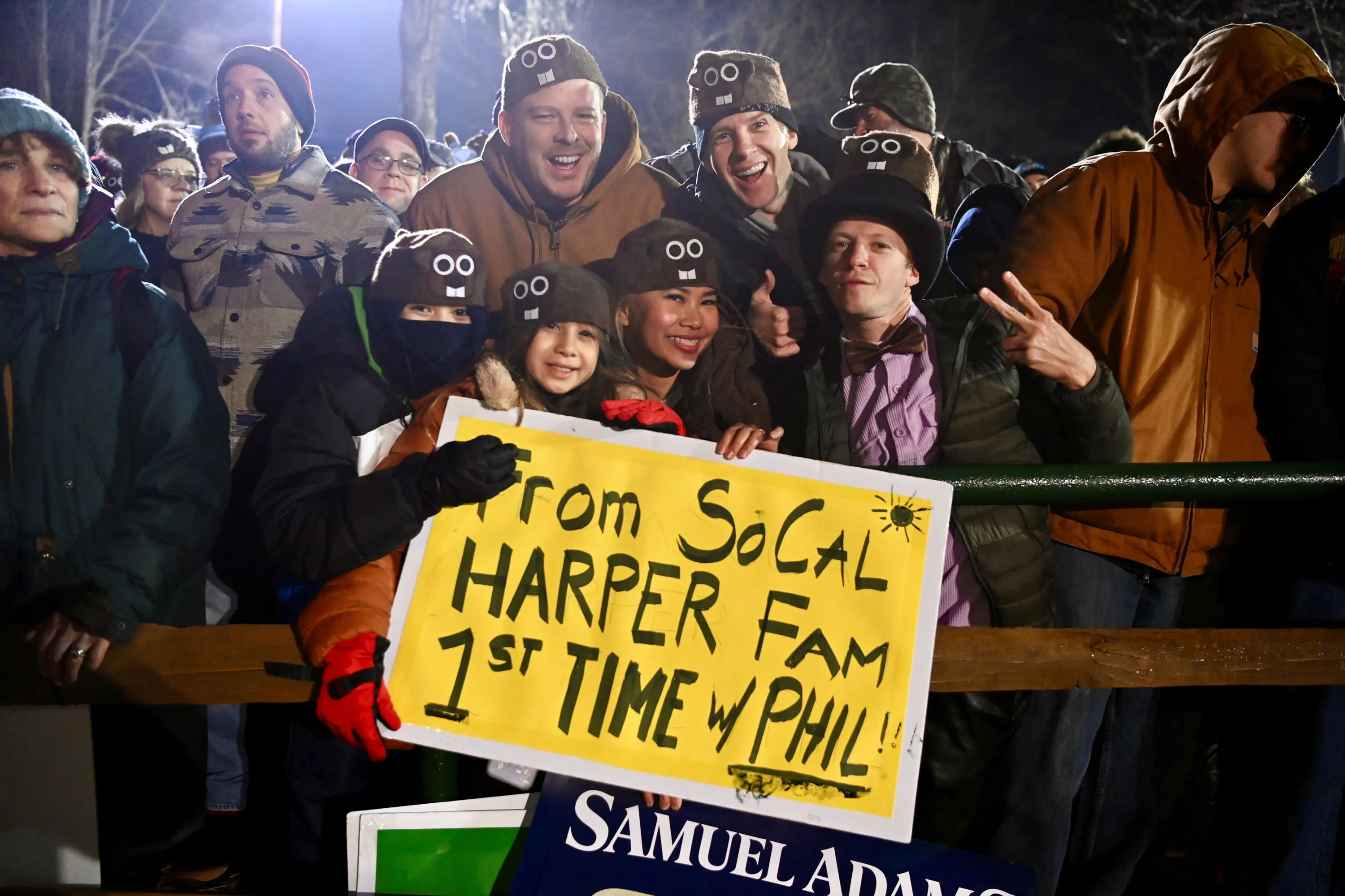 Members of the Harper family from Los Angeles attend Groundhog Day festivities at Gobbler's Knob in Punxsutawney, Pennsylvania, U.S., February 2, 2024. (Photo by Alan Freed/Reuters)
