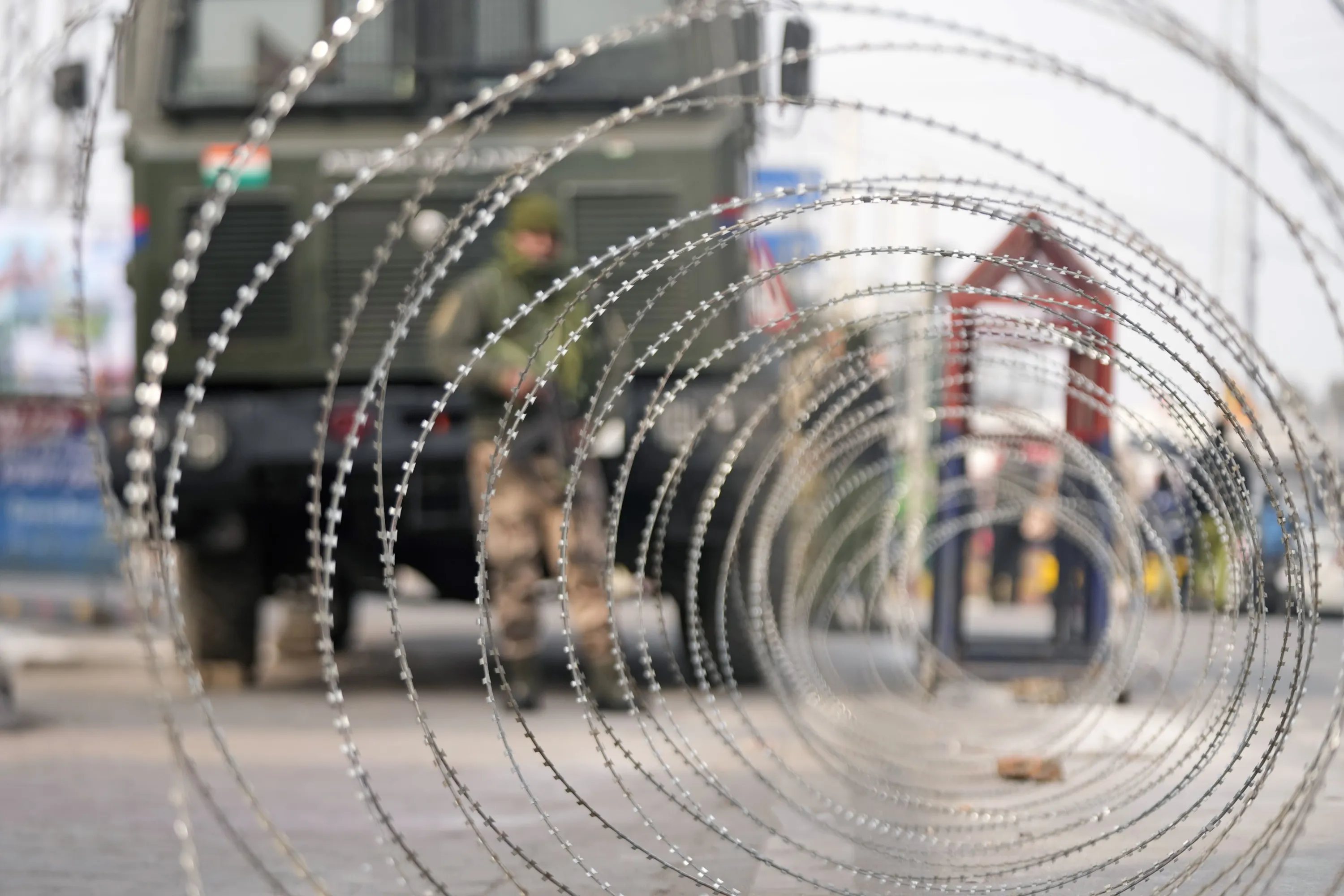 A paramilitary soldier keeps guard at the venue where a public gathering is planned to celebrate the Republic Day on Friday, in Jammu, India, Thursday, January 25, 2024. (Photo by Channi Anand/AP Photo)