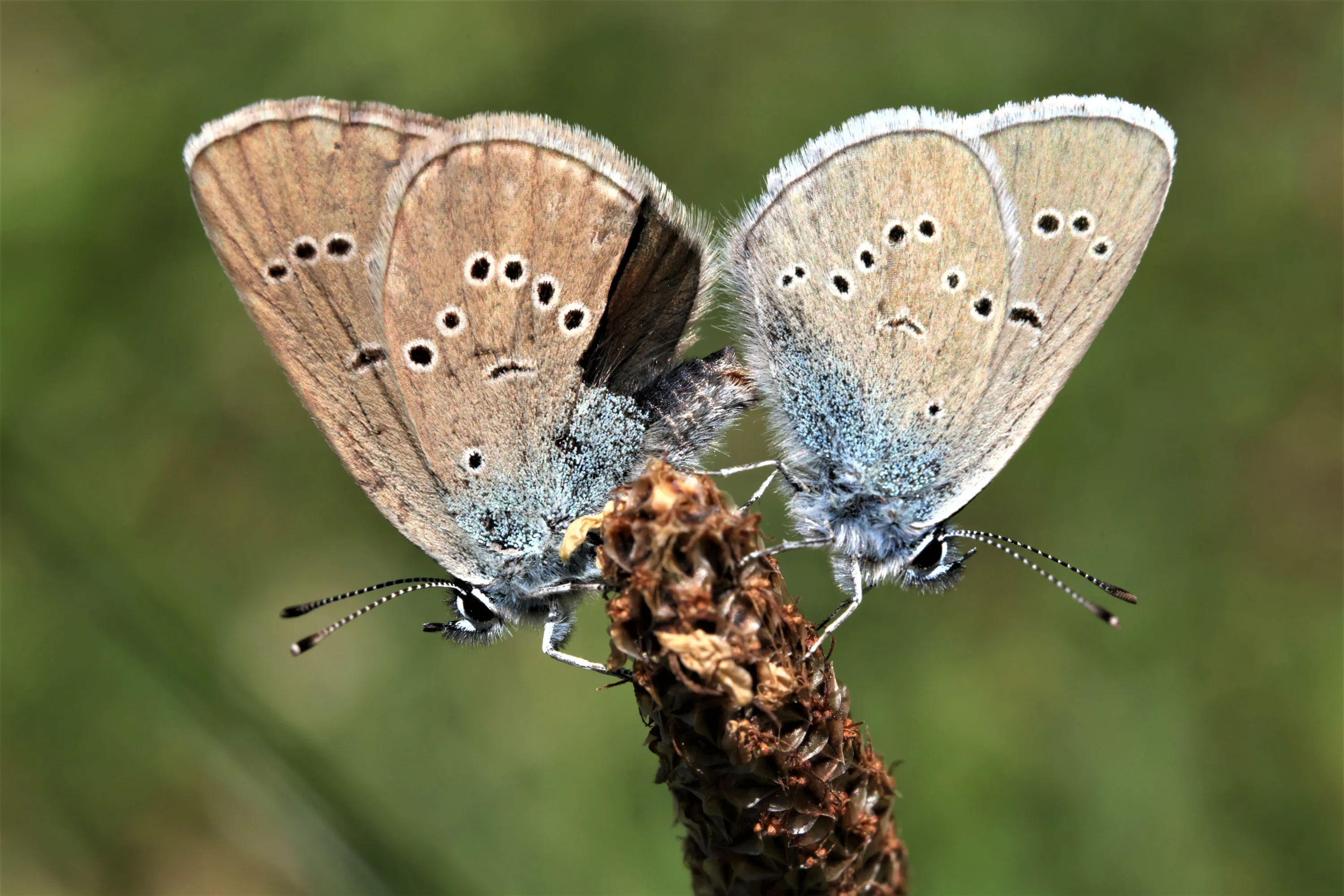 A pair of Mazarine blue (Cyaniris semiargus) butterflies mate on a Tyrolean alpine meadow on June 25, 2023 near Innervals, Austria. An initiative called Viel-Falter, lead by the University of Innsbruck, is operating a nationwide monitoring program that combines scientific and volunteer data collection on Austria's butterfly and moth populations. The data serves as an indicator to assess the state of biodiversity across the country, which, like elsewhere across Europe, is in steep decline. Human intrusion, through agriculture, water diversion, urban sprawl, construction and other activities that destroy natural habitats, has caused the decline, and climate change is becoming an increasing threat, especially in Alpine regions, which are warming twice as fast as the global average. The European Parliament is currently considering the EU Nature Restoration Law that includes the aim of restoring natural habitats. (Photo by Sean Gallup/Getty Images)