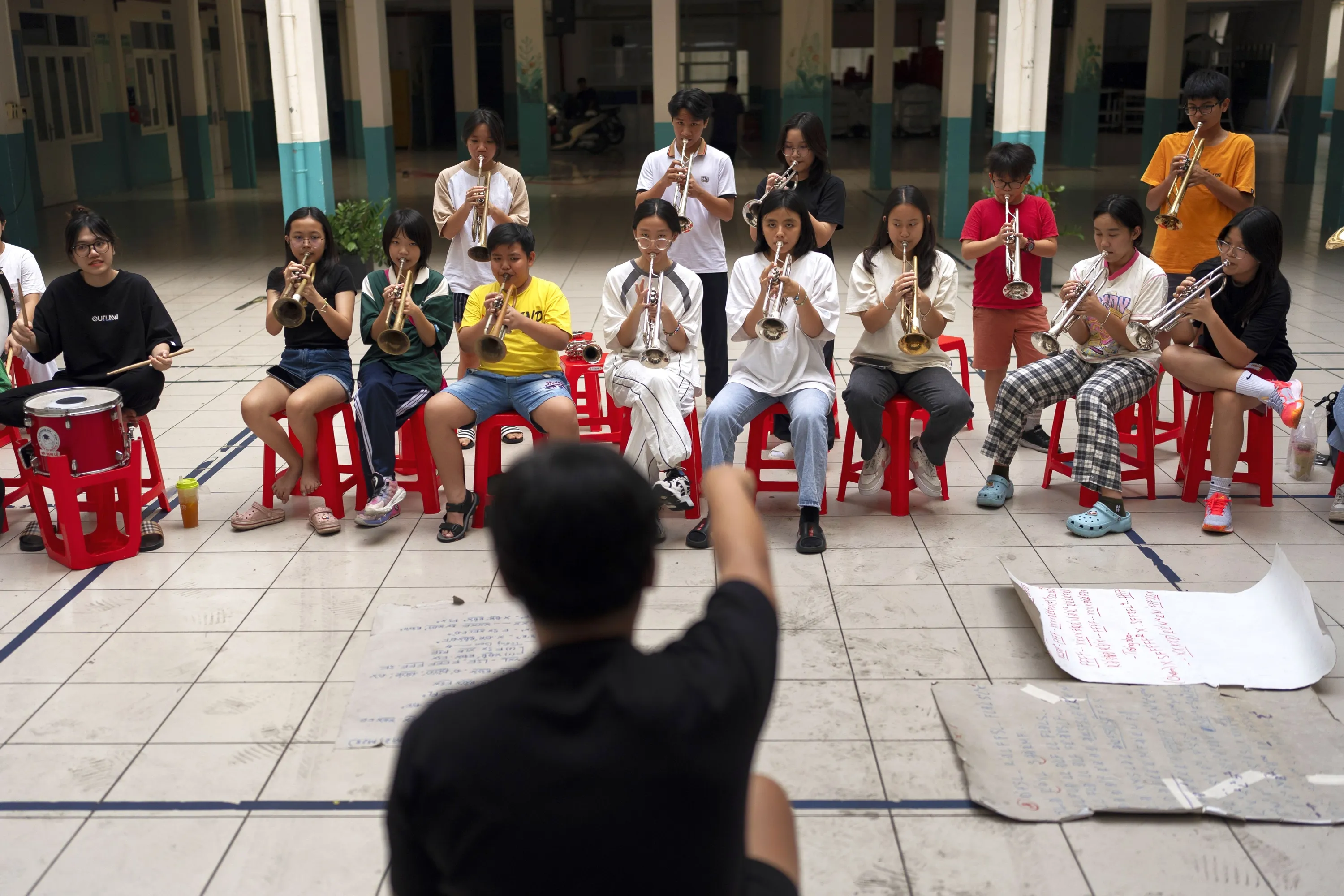Secondary school band members rehearse for an event in Ho Chi Minh City, Vietnam, January 14, 2024. (Photo by Jae C. Hong/AP Photo)