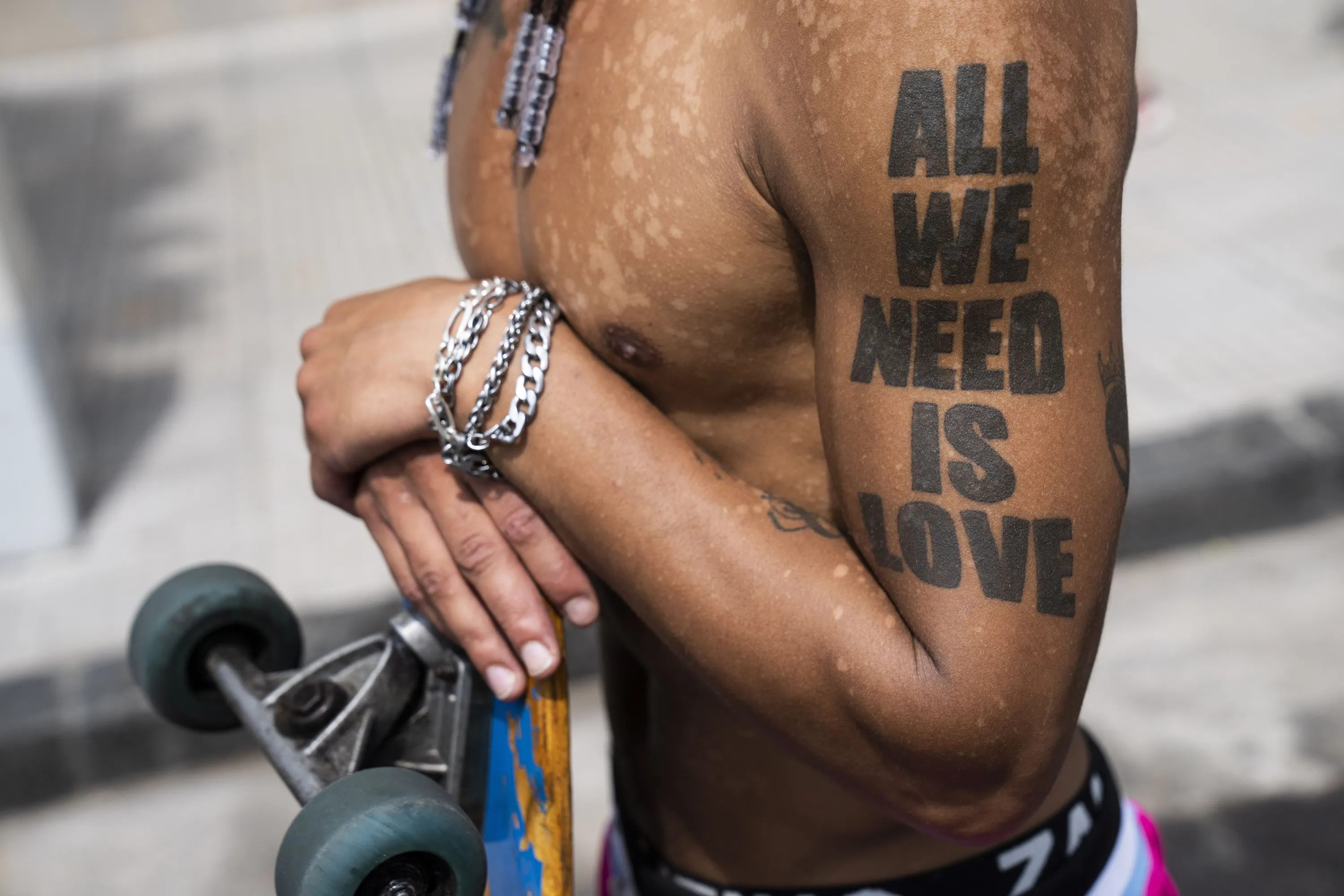 Skater Christoper Melgar watches security forces during a protest against food scarcity affecting community soup kitchens in Buenos Aires, Argentina, Thursday, February 8, 2024. (Photo by Rodrigo Abd/AP Photo)