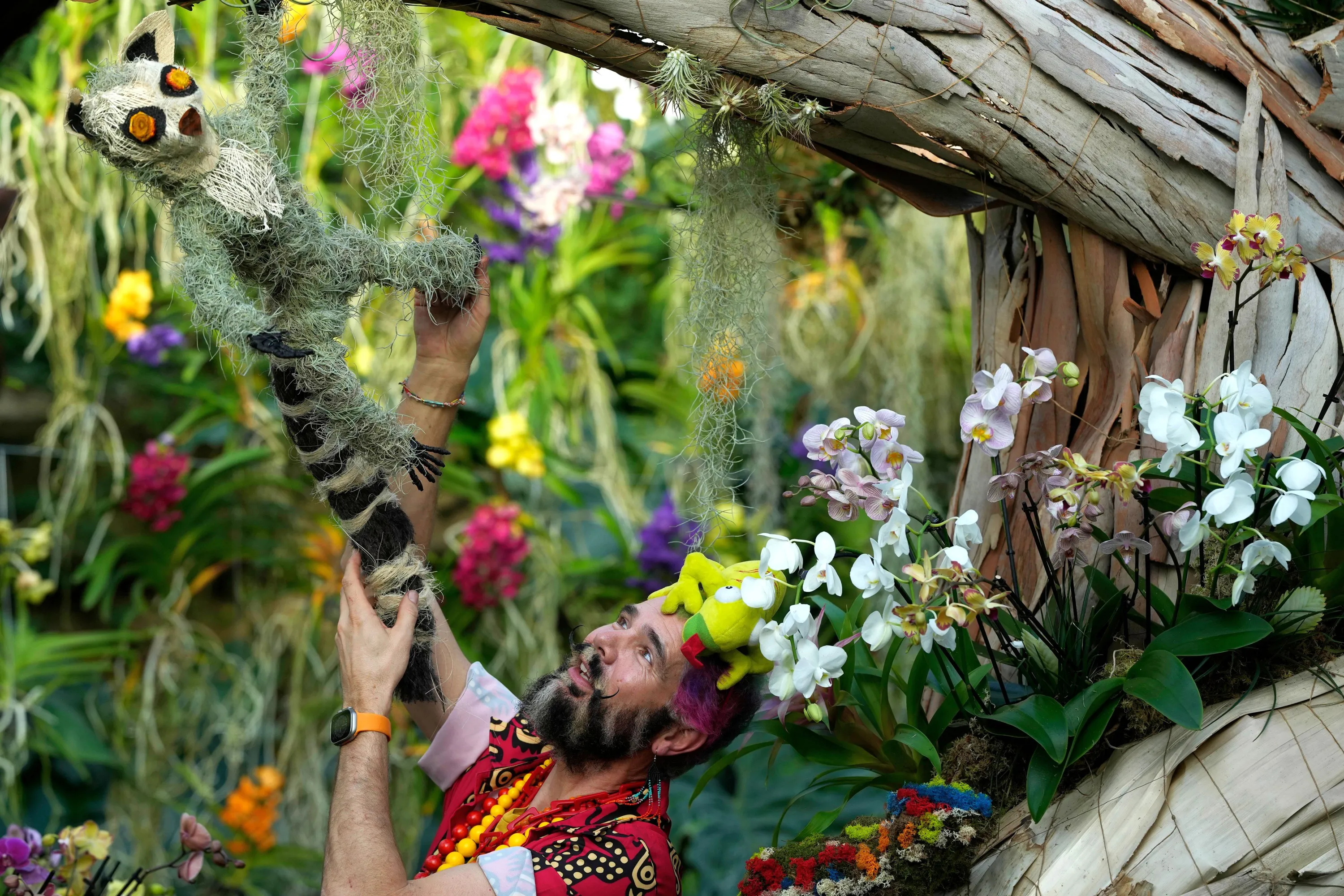 Hence Roling, Kew Ambassador and in House Florist, looks at displays of Orchids ahead of the opening to the public of the Orchid festival at Kew Gardens in London, Thursday, February 1, 2024. The festival which is open from Feb.3 to March 3, features thousands of colourful orchids and hundreds of other tropical plants-Horticultural displays all hand-crafted from plants, including lemurs, chameleons and the enigmatic aye-aye. (Photo by Alastair Grant/AP Photo)