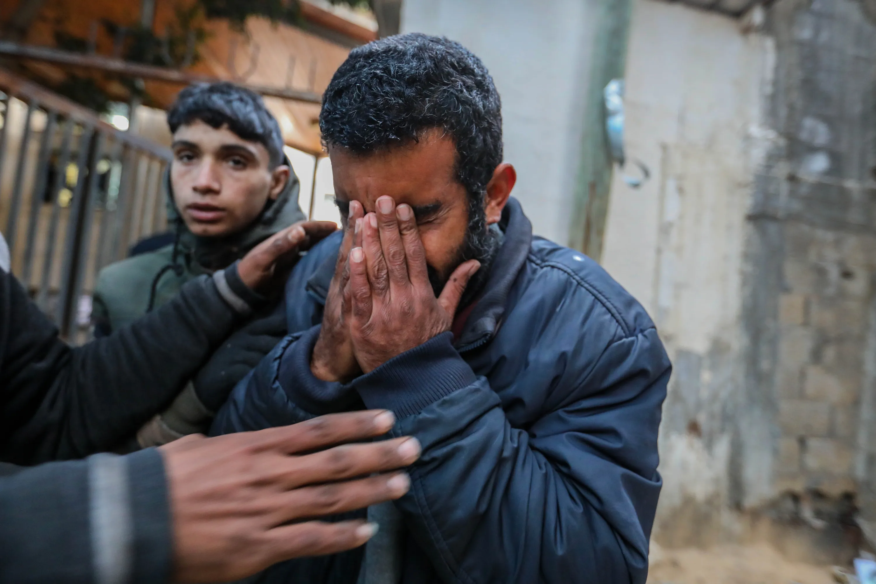 People mourn as they collect the bodies of friends and relatives killed in on February 1, 2024 in Rafah, Gaza. Last week, Gaza's health ministry reported that more than 26,000 people had been killed in Gaza since the start of the current war on October 7. More than 64,400 have been wounded, the ministry said, with the majority of the territory's population displaced. (Photo by Ahmad Hasaballah/Getty Images)