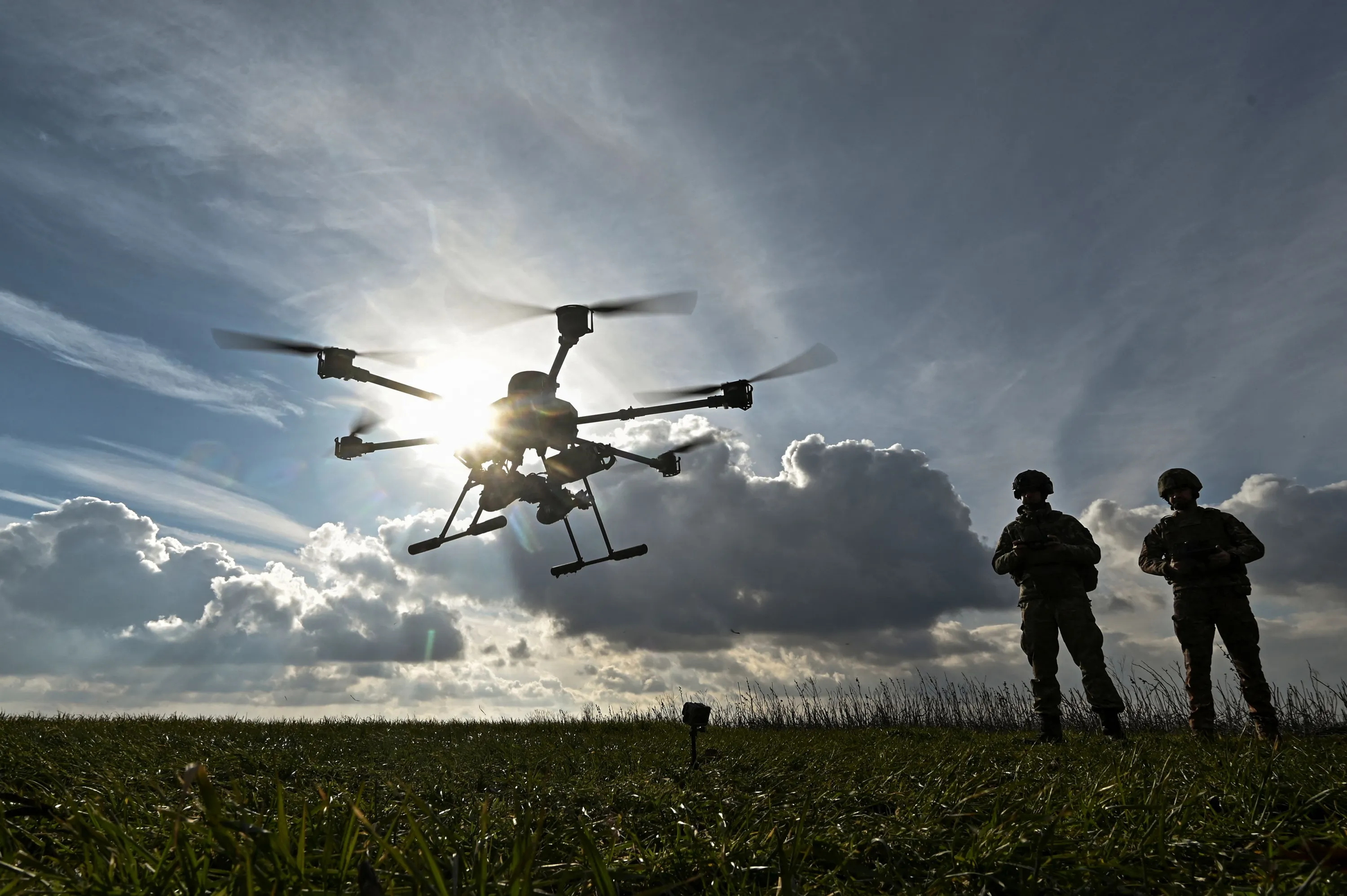 Ukrainian servicemen fly with a Vampire unmanned aerial vehicle (UAV) near a front line, amid Russia's attack on Ukraine, in Zaporizhzhia region, Ukraine on February 2, 2024. (Photo by Reuters/Stringer)