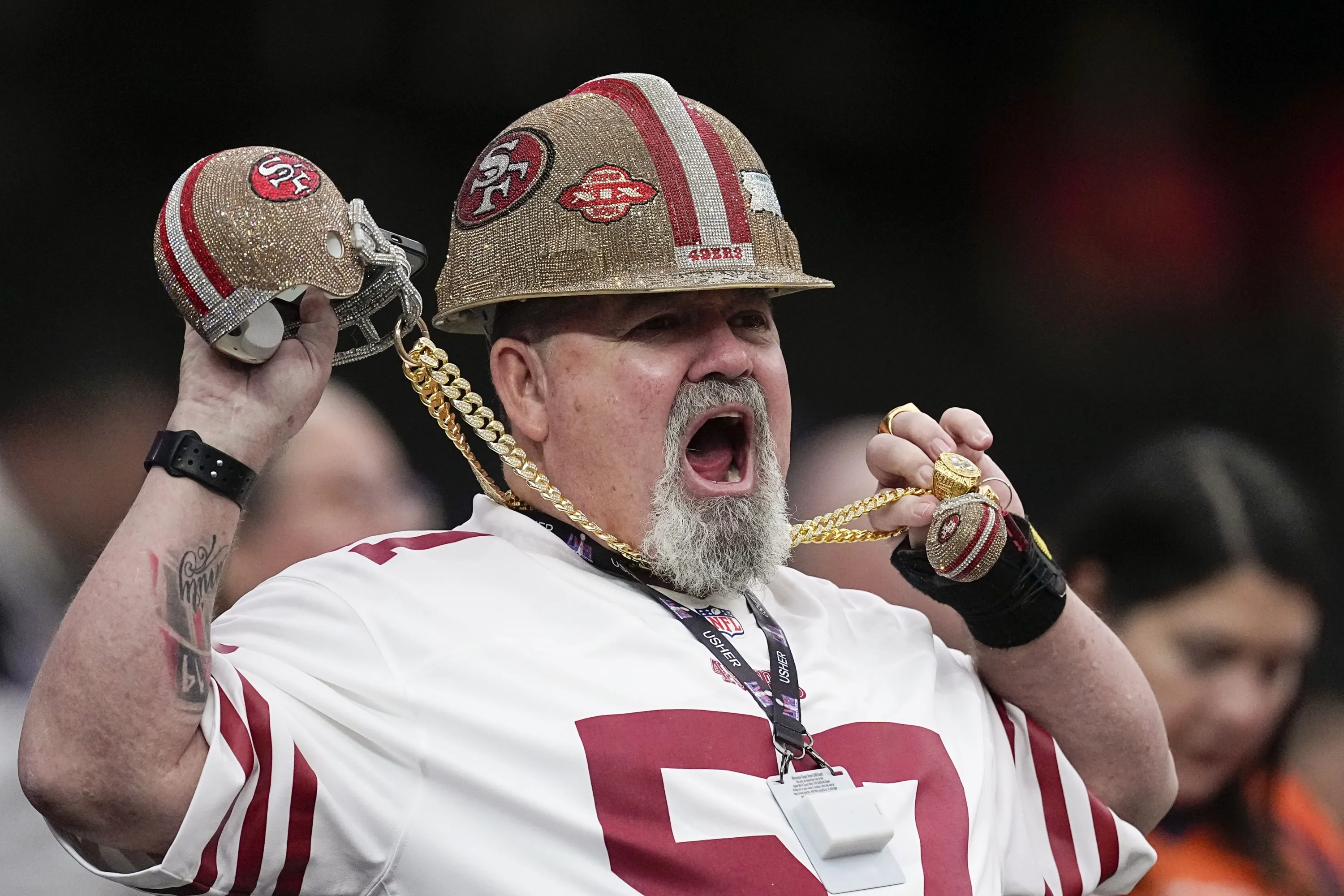 A San Francisco 49ers fan cheers before the NFL Super Bowl 58 football game between the 49ers and the Kansas City Chiefs, Sunday, February 11, 2024, in Las Vegas. (Photo by Eric Gay/AP Photo)