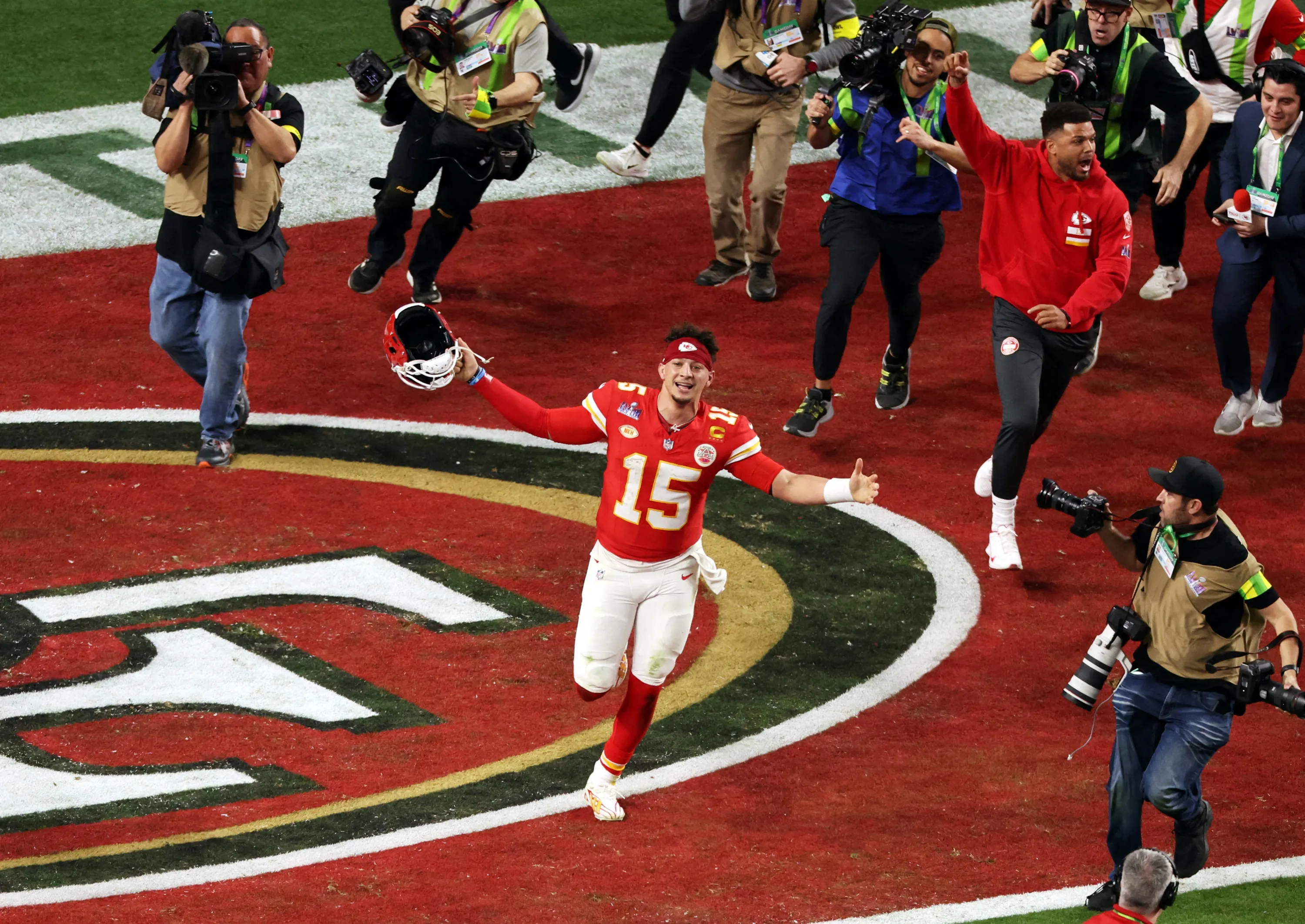 Kansas City Chiefs' Patrick Mahomes celebrates after winning the NFL Super Bowl 58 football game against the San Francisco 49ers, February 11, 2024, in Las Vegas, Nevada. The Chiefs won 25-22 in overtime. (Photo by Mike Blake/Reuters)