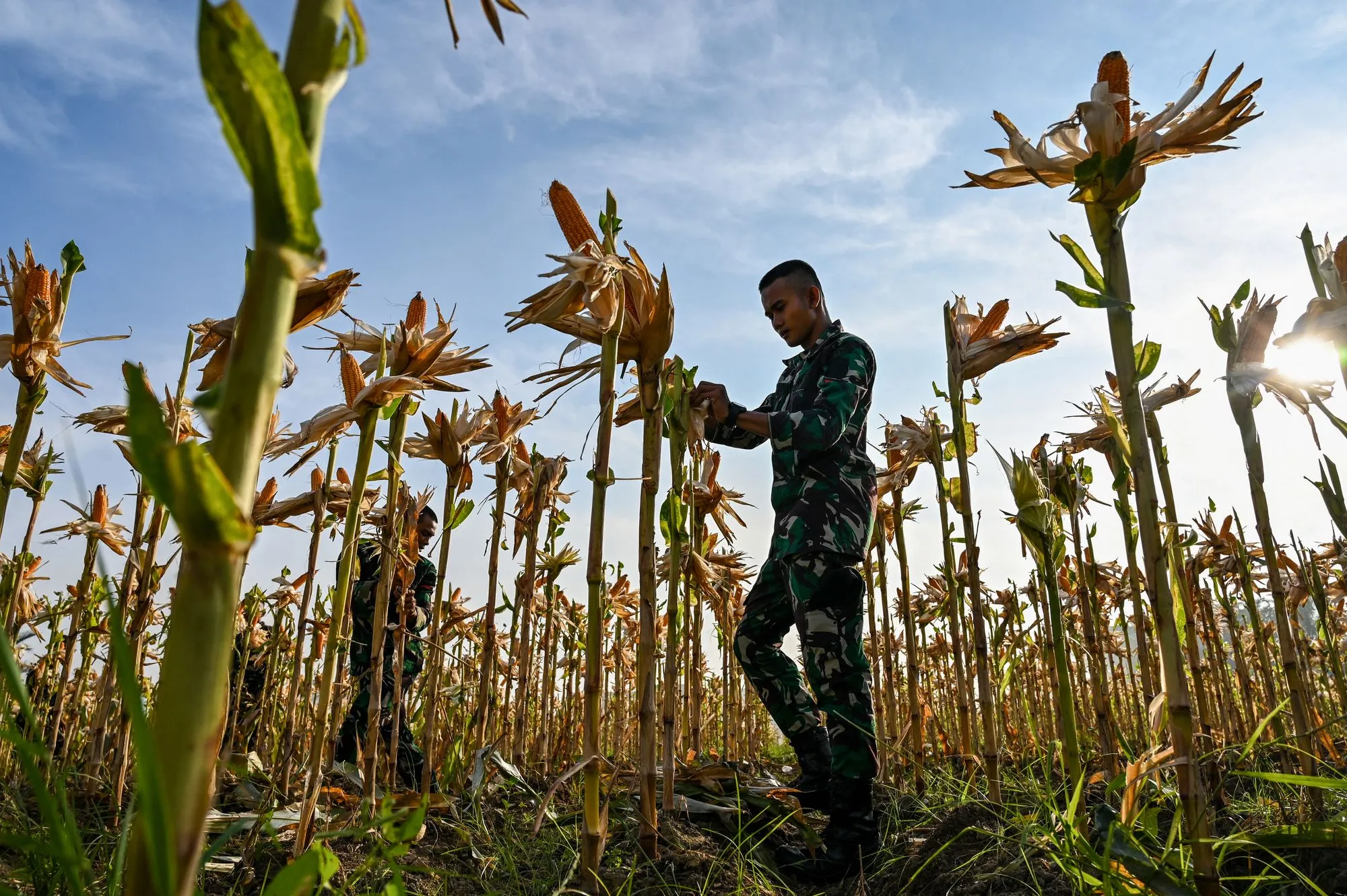 A soldier checks a corn plantation of the Raider 112 infantry battalion base in Japakeh, Indonesia's Aceh province on February 6, 2024. (Photo by Chaideer Mahyuddin/AFP Photo)