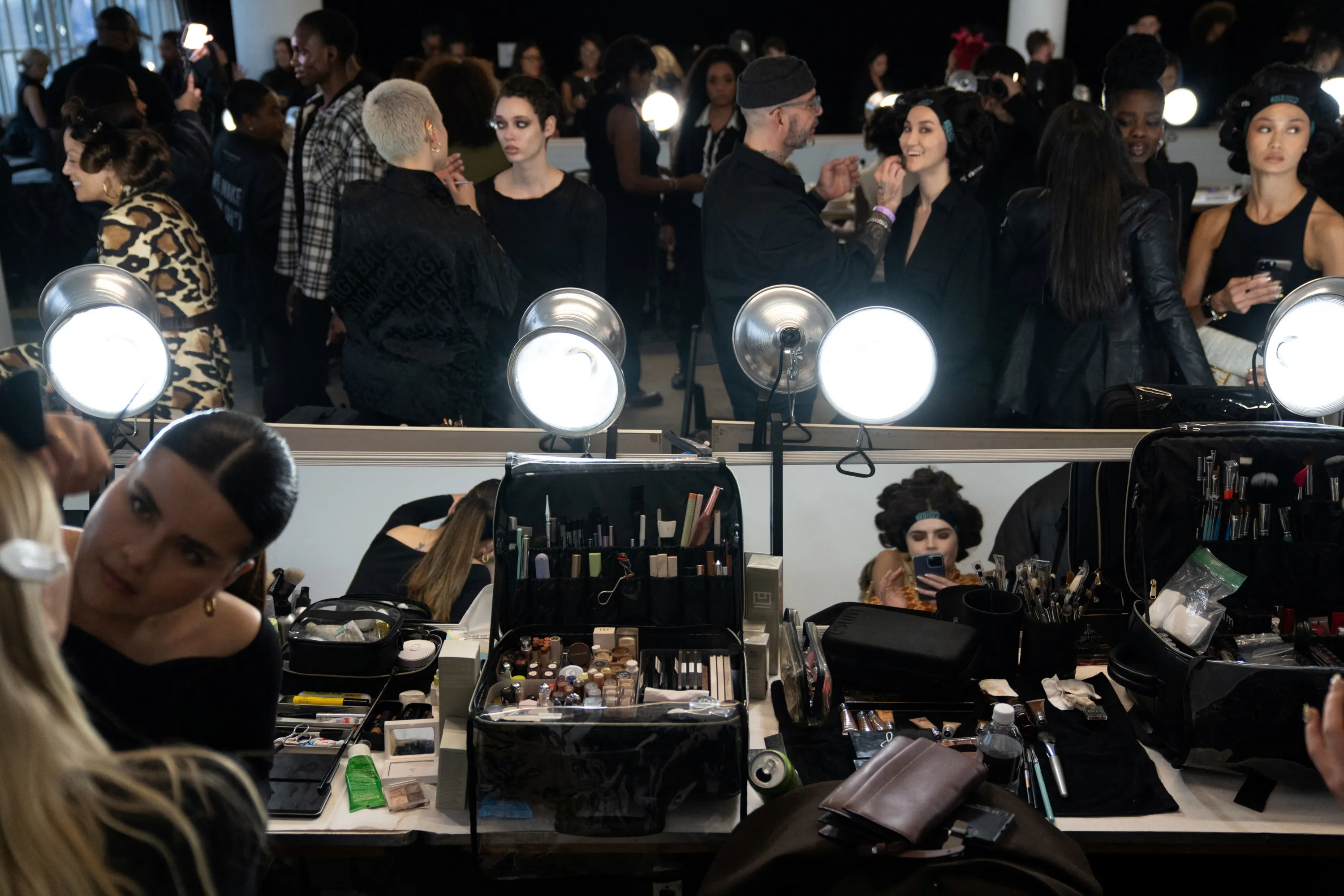 Models are prepped backstage before presenting creations by Sergio Hudson, during New York Fashion Week, in New York City, New York, U.S., February 12, 2024. (Photo by David Dee Delgado/Reuters)
