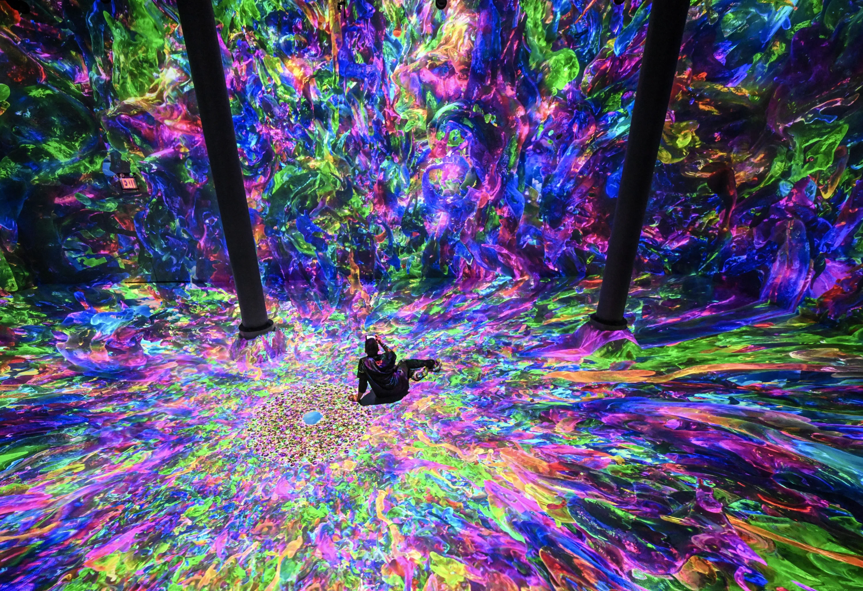 People visit the World of AI·magination exhibition at the Artechouse in New York, United States on February 01, 2024. World of AI·magination is Artechouse Studio's latest venture into the dynamic world of generative AI, resulting in a large-scale experiential digital artwork. (Photo by Fatih Aktas /Anadolu via Getty Images)