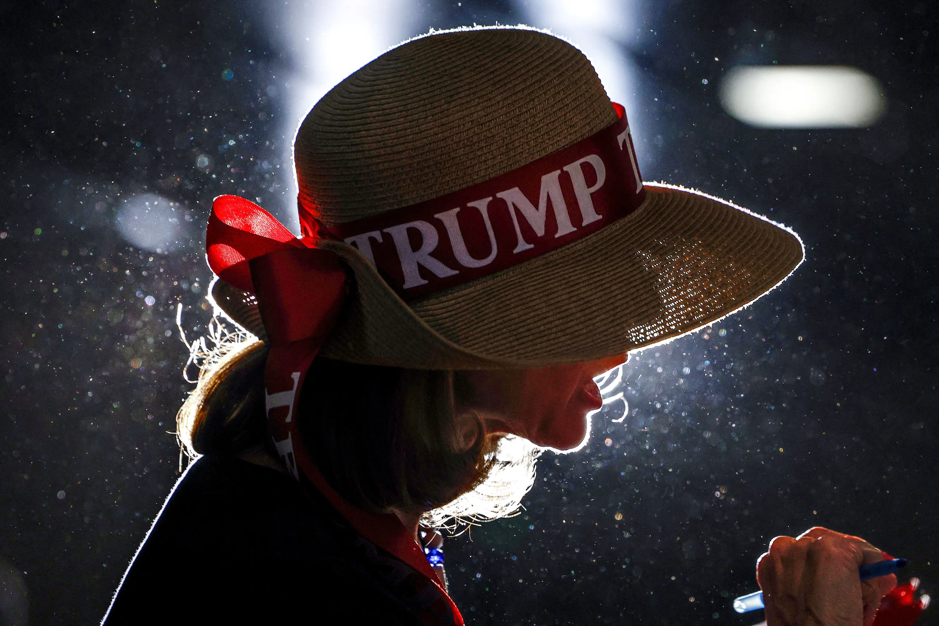 Debbie Barton from Blufton, South Carolina, asks supporters of Republican presidential candidate and former U.S. President Donald Trump to sign a petition calling for one day of voting and the eradication of voting machines, ahead of a “Team Trump” event in Beaufort, South Carolina, U.S. February 21, 2024. (Photo by Evelyn Hockstein/Reuters)