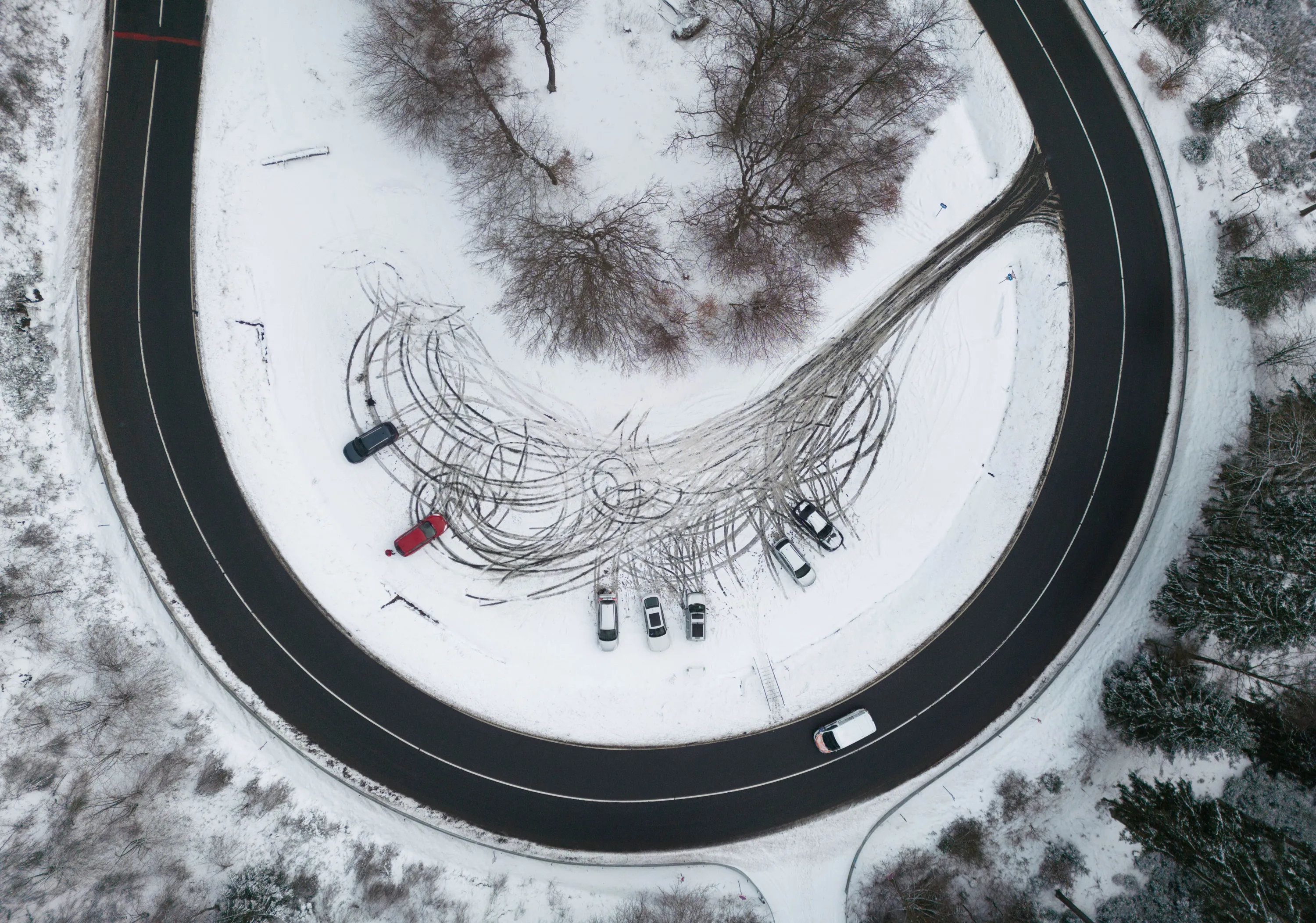 Cars are parked in a snowy corner of a road near Schmitten, Hessen, Germany on Tuesday, January 16, 2024. (Photo by Boris Roessler/AP Photo)