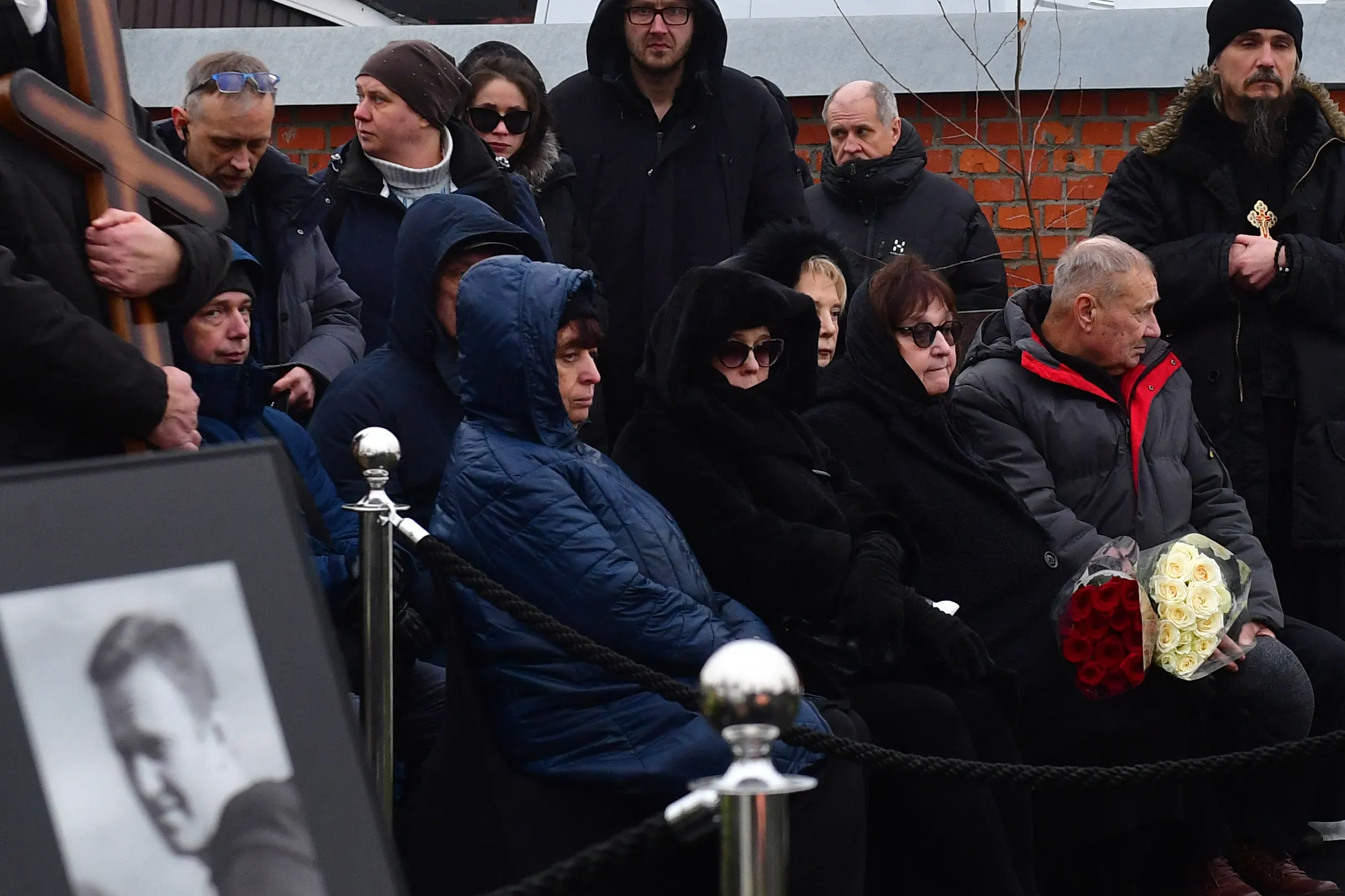 Lyudmila Navalnaya (3rd R front) and Anatoly Navalny (2nd R front), parents of late Russian opposition leader Alexei Navalny, attends a funeral ceremony for their son at the Borisovo cemetery in Moscow's district of Maryino on March 1, 2024. (Photo by Olga Maltseva/AFP Photo)