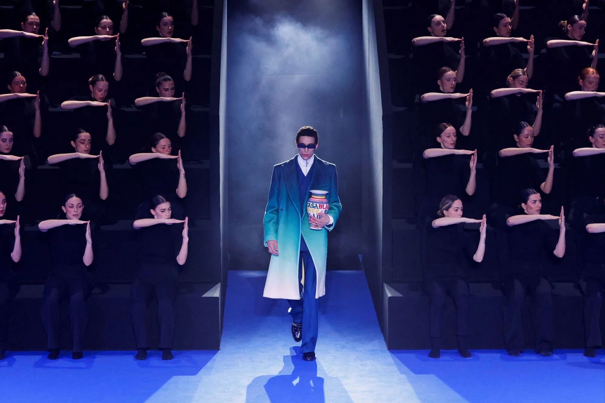 A model presents a creation by Casablanca for the Women Ready-to-wear Fall-Winter 2024/2025 collection as part of the Paris Fashion Week, in Paris on February 28, 2024. (Photo by GGeoffroy Van der Hasselt/AFP Photo)