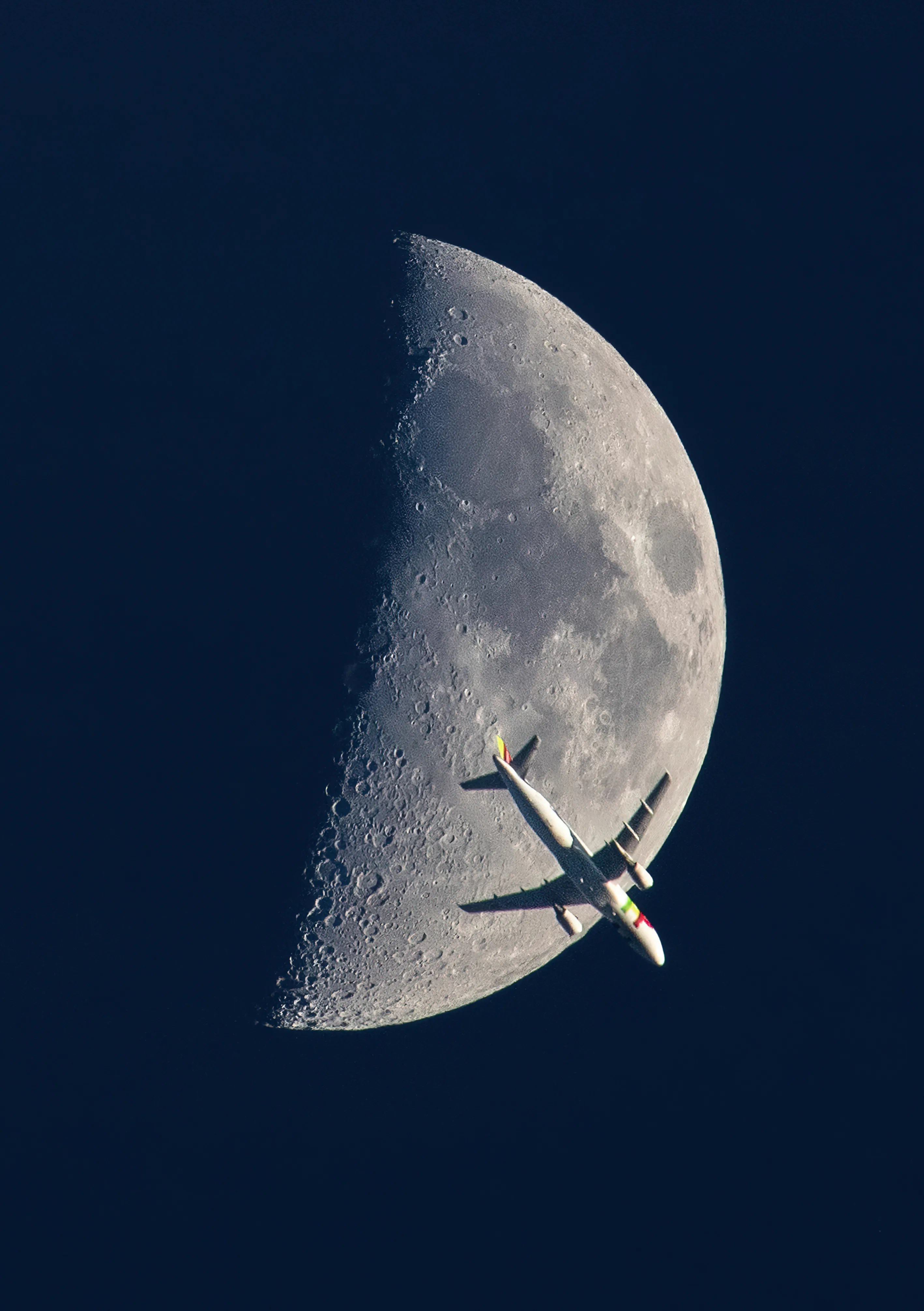 Pictured is a TAP Air Portugal plane passing in front of the moon at 8.05pm on Friday evening April 8, 2022. Viewed from a balcony in the Chalk Farm area of London. With the sun setting, it lit up the Embraer E190LR plane, coupled with perfect timing to made a good shot. (Photo by @iuli_snaps/pictureexclusive.com)