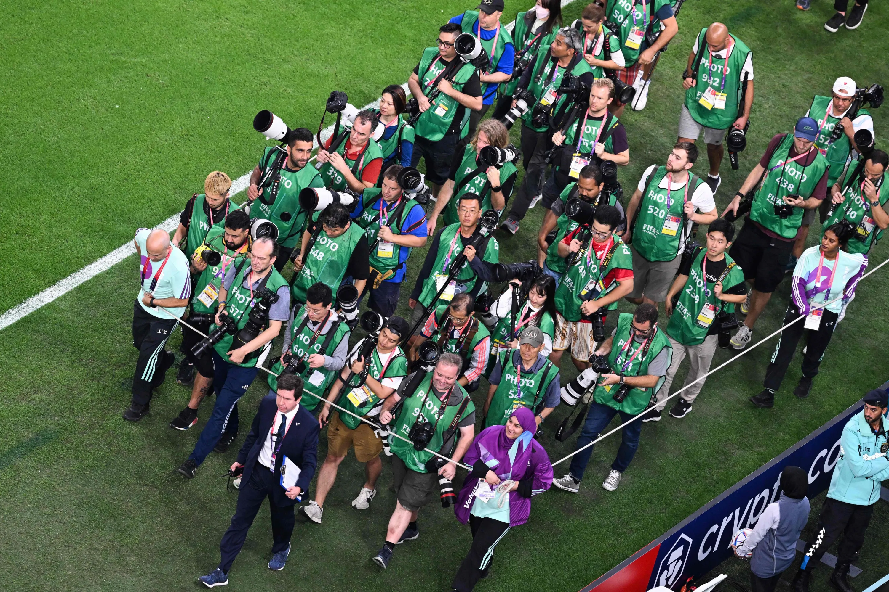 Photographers cover the Qatar 2022 World Cup Group H football match between South Korea and Portugal at the Education City Stadium in Al-Rayyan, west of Doha on December 2, 2022. (Photo by Noushad Thekkayil/AFP Photo)