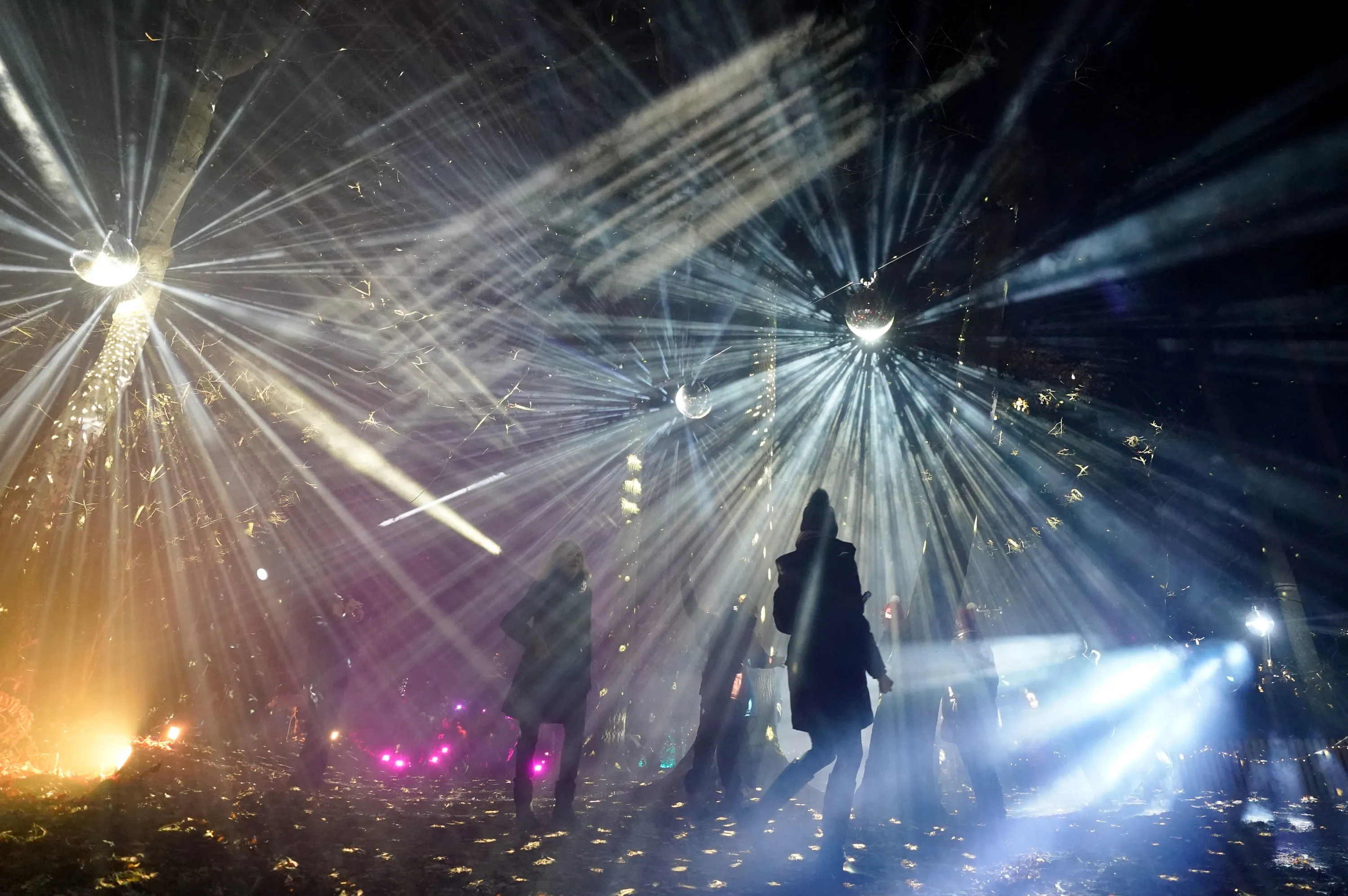 People look at the light installations on display during Windsor Great Park Illuminated, a festive light trail in Windsor, Berkshire on Tuesday, December 6, 2022, which is open until January 2. (Photo by Andrew Matthews/PA Images via Getty Images)