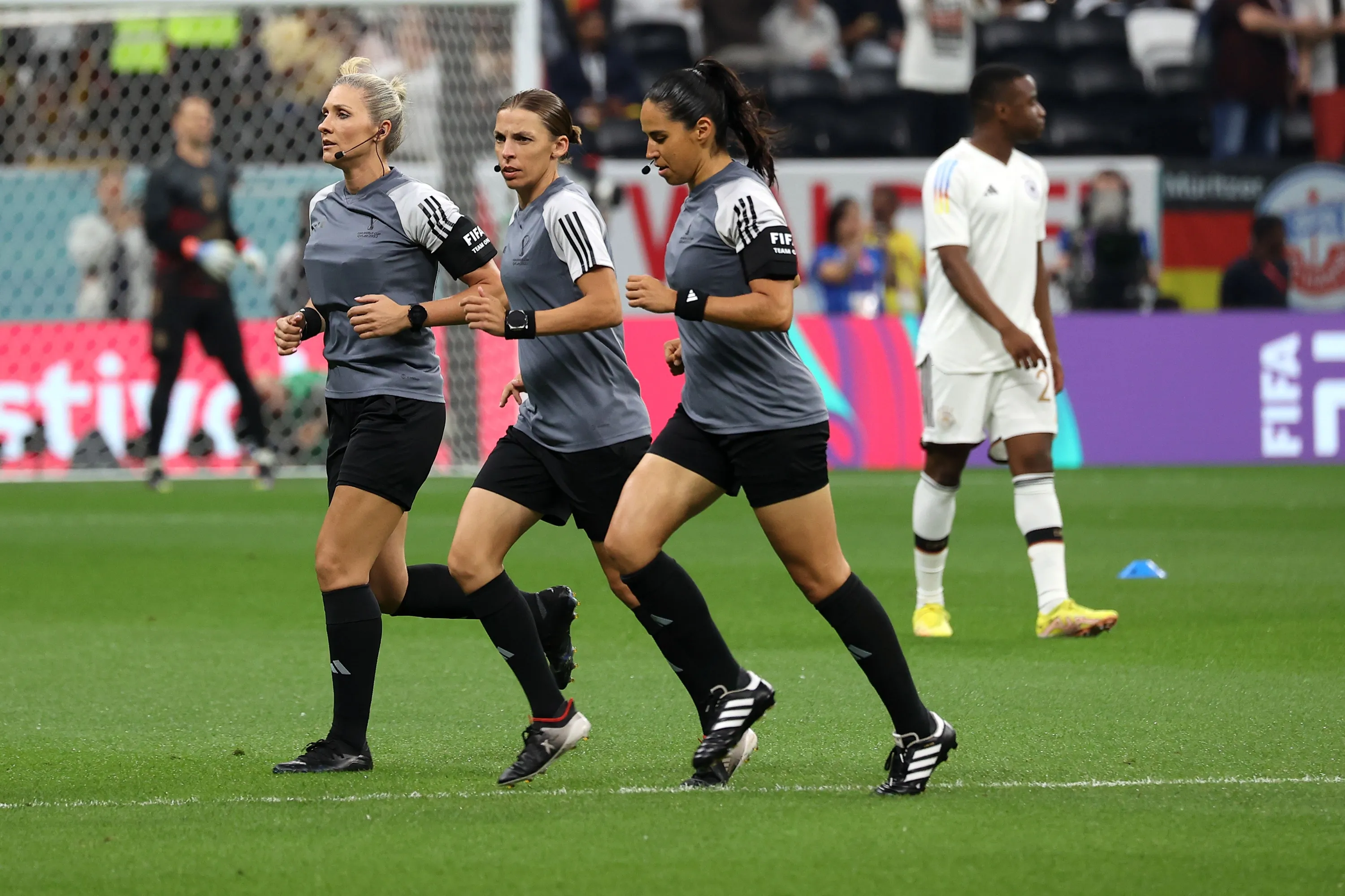 The first all-female refereeing team pictured ahead of the Group E match Costa Rica v Germany during FIFA World Cup 2022 on December 1, 2022 at Al Bayt Stadium. (Photo by Showkat Shafi/Al Jazeera)