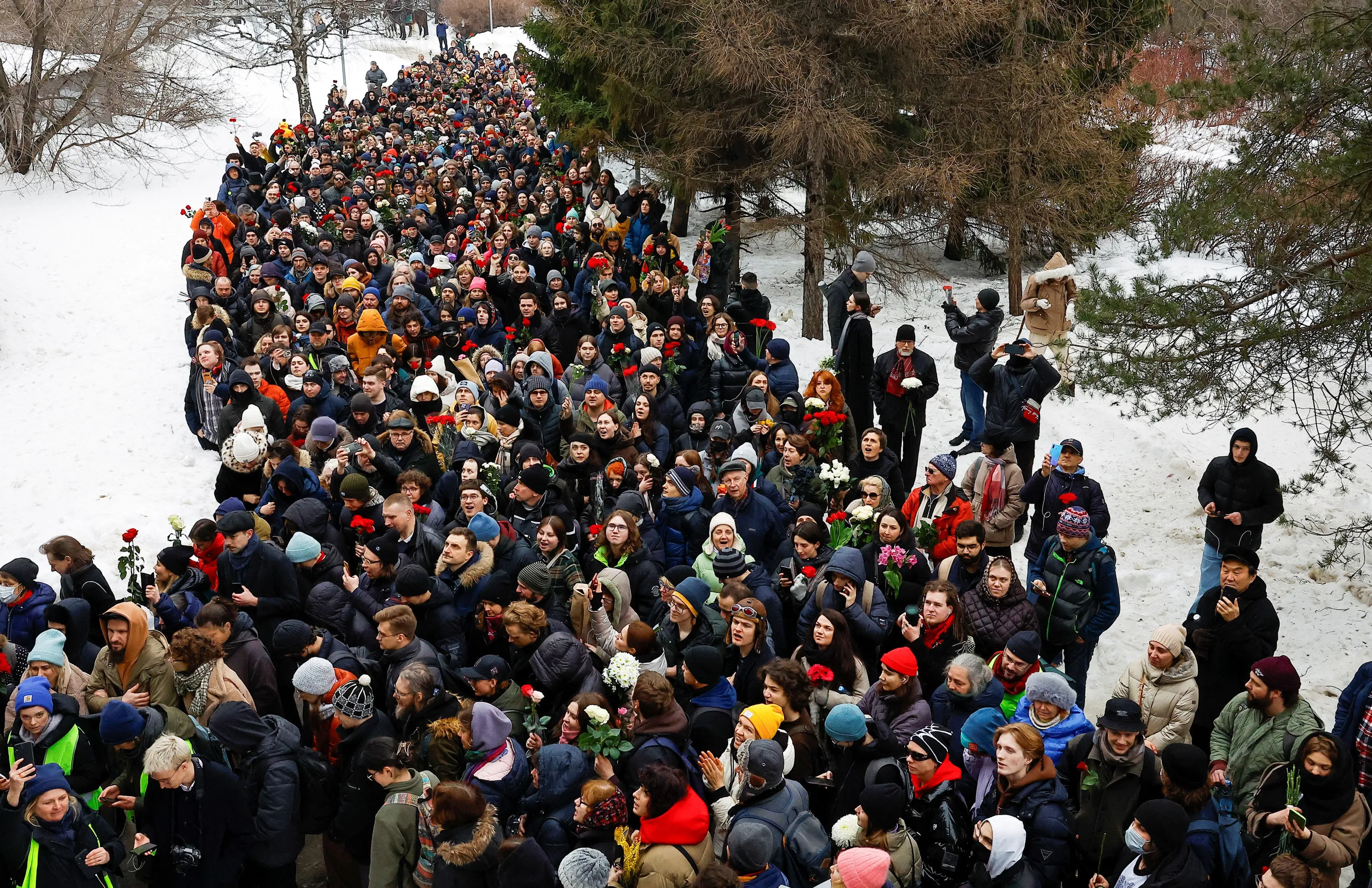 People walk towards the Borisovskoye cemetery during the funeral of Russian opposition politician Alexei Navalny in Moscow, Russia, on March 1, 2024. (Photo by Reuters/Stringer)
