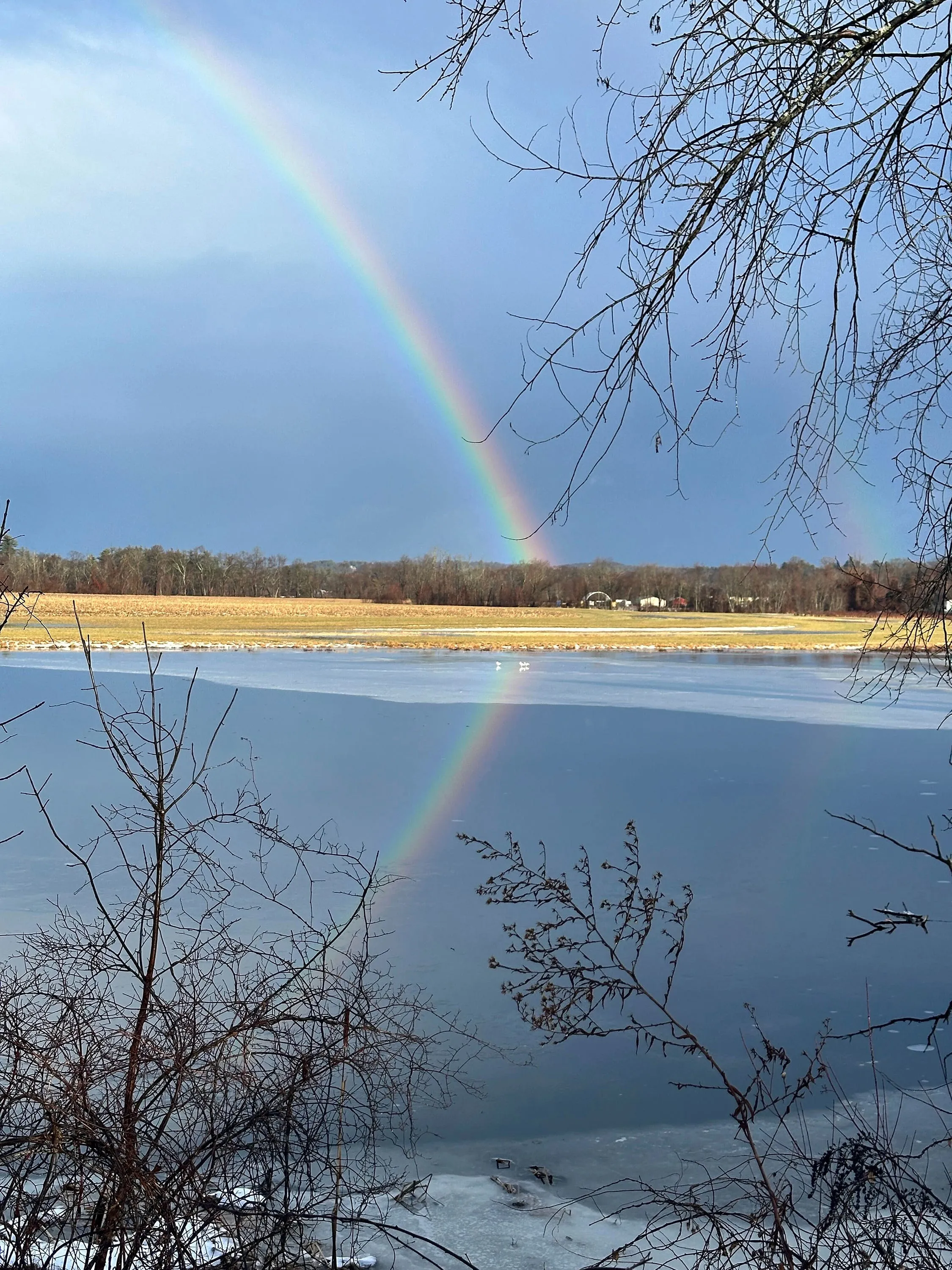 A rainbow appears in the sky over Concord, N.H. early Wednesday, January 10, 2024. (Photo by Holly Ramer/AP Photo)