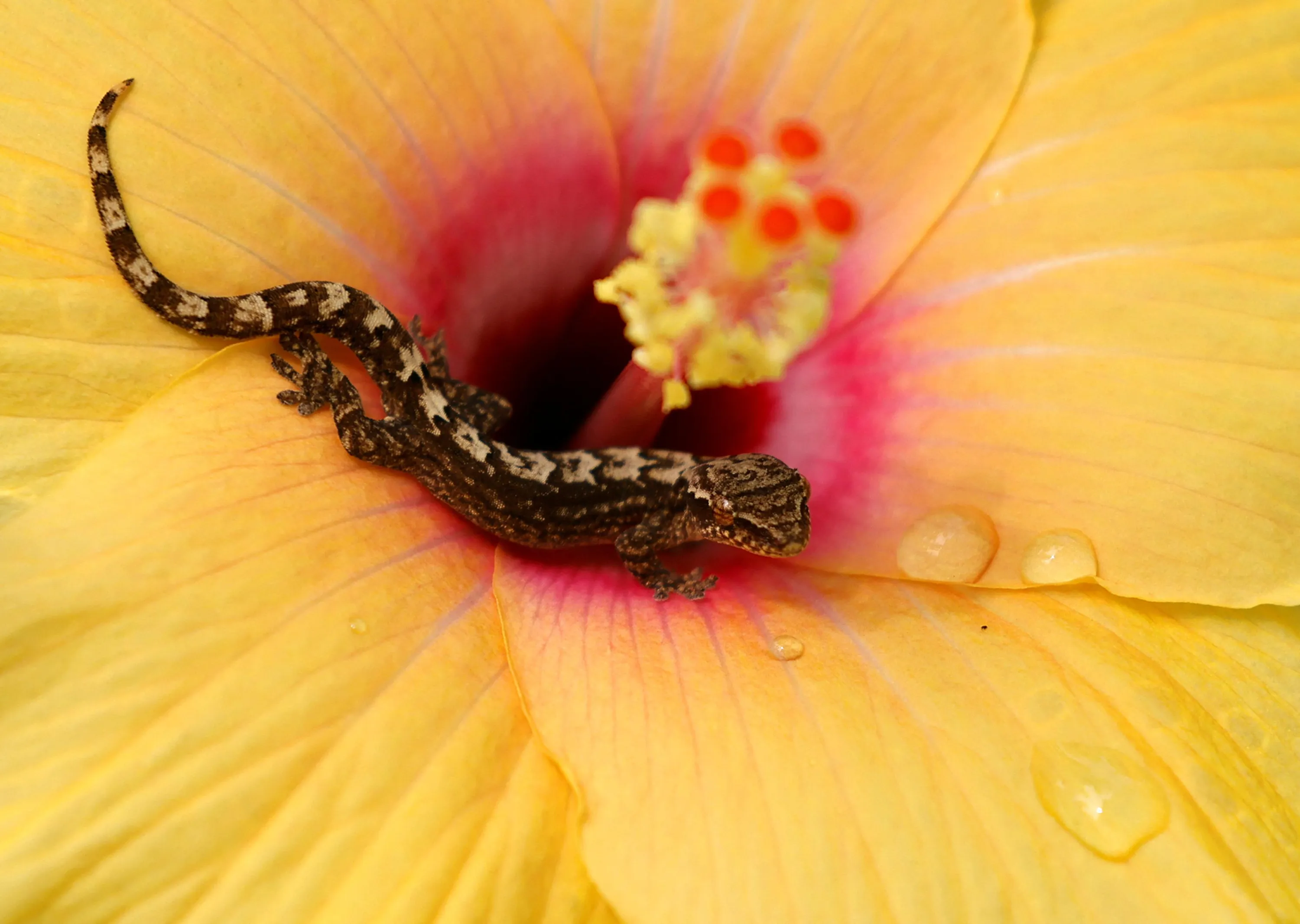 A lizard drinks from a Hibiscus flower in Singapore on September 29, 2022. (Photo by Edgar Su/Reuters)