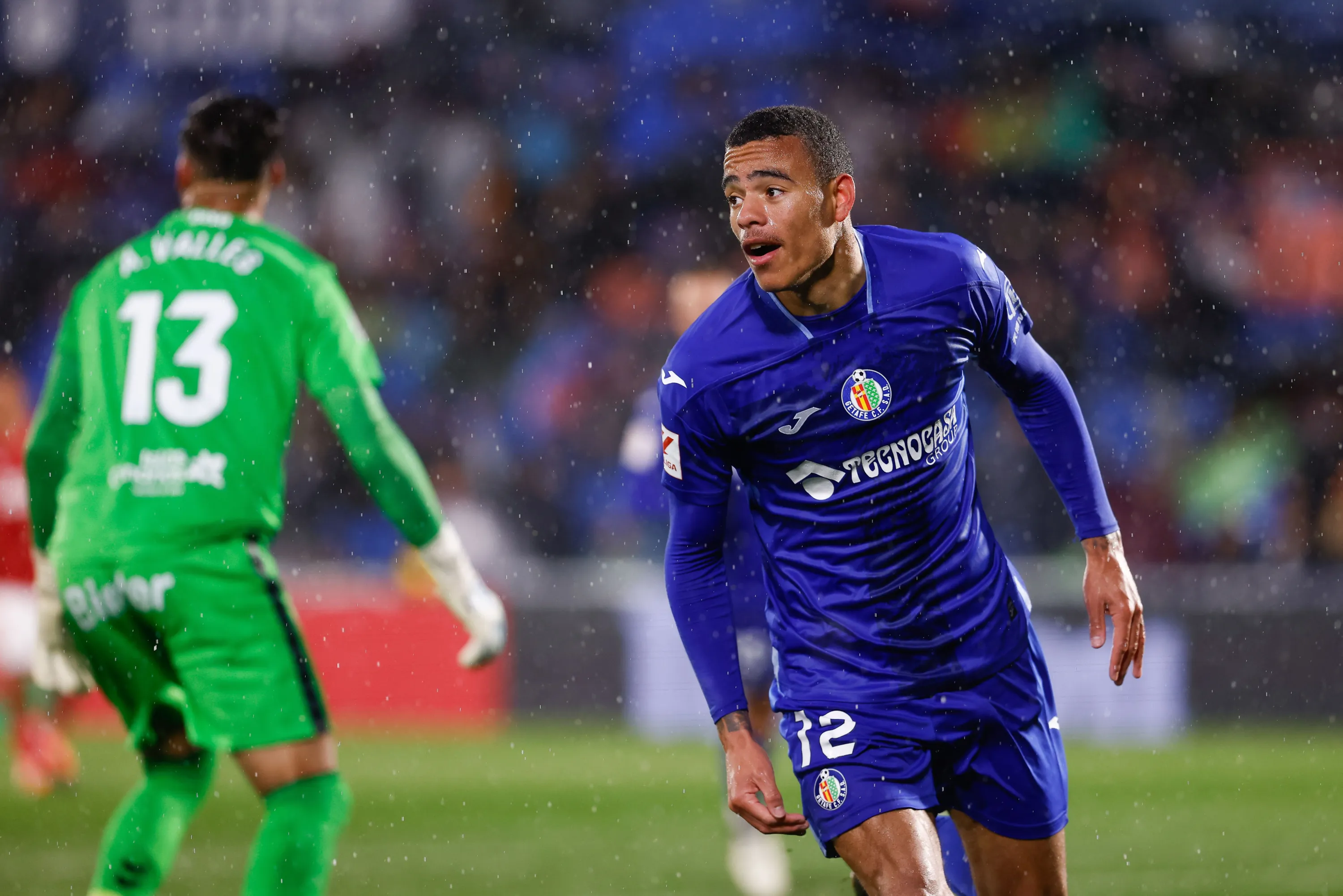 Mason Greenwood of Getafe CF celebrates with teammates after scoring his team's second goal during the LaLiga EA Sports match between Getafe CF and UD Las Palmas at Coliseum de Getafe on March 02, 2024, in Getafe, Madrid, Spain. (Photo by Oscar J. Barroso/Europa Press via Getty Images)