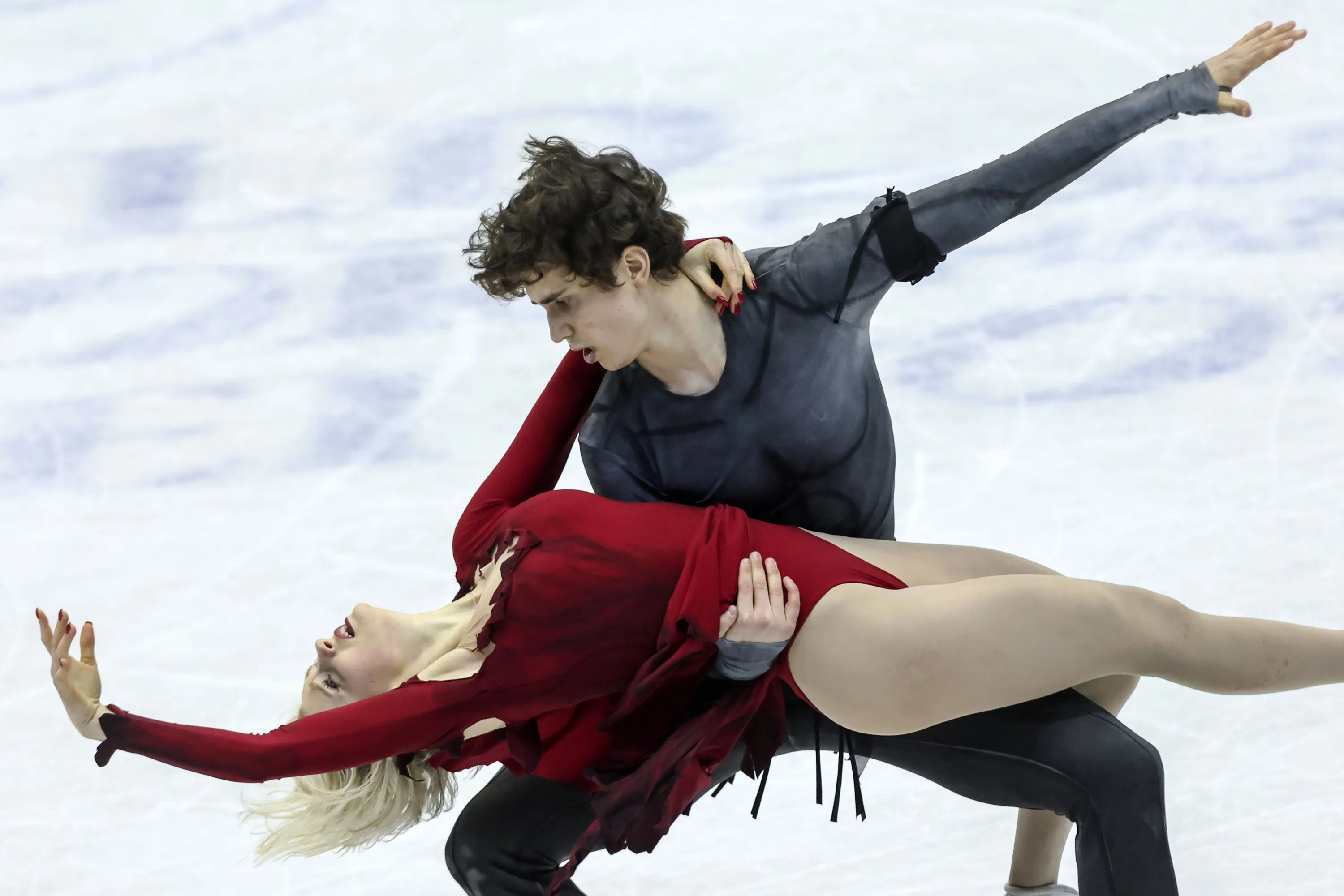 Elizabeth Tkachenko and Alexei Kiliakov of Israel perform during the Junior Ice Dance Free Dance of the ISU World Junior Figure Skating Championships at Taipei Arena in Taipei, Taiwan, 02 March 2024. (Photo by Ritchie B. Tongo/EPA)