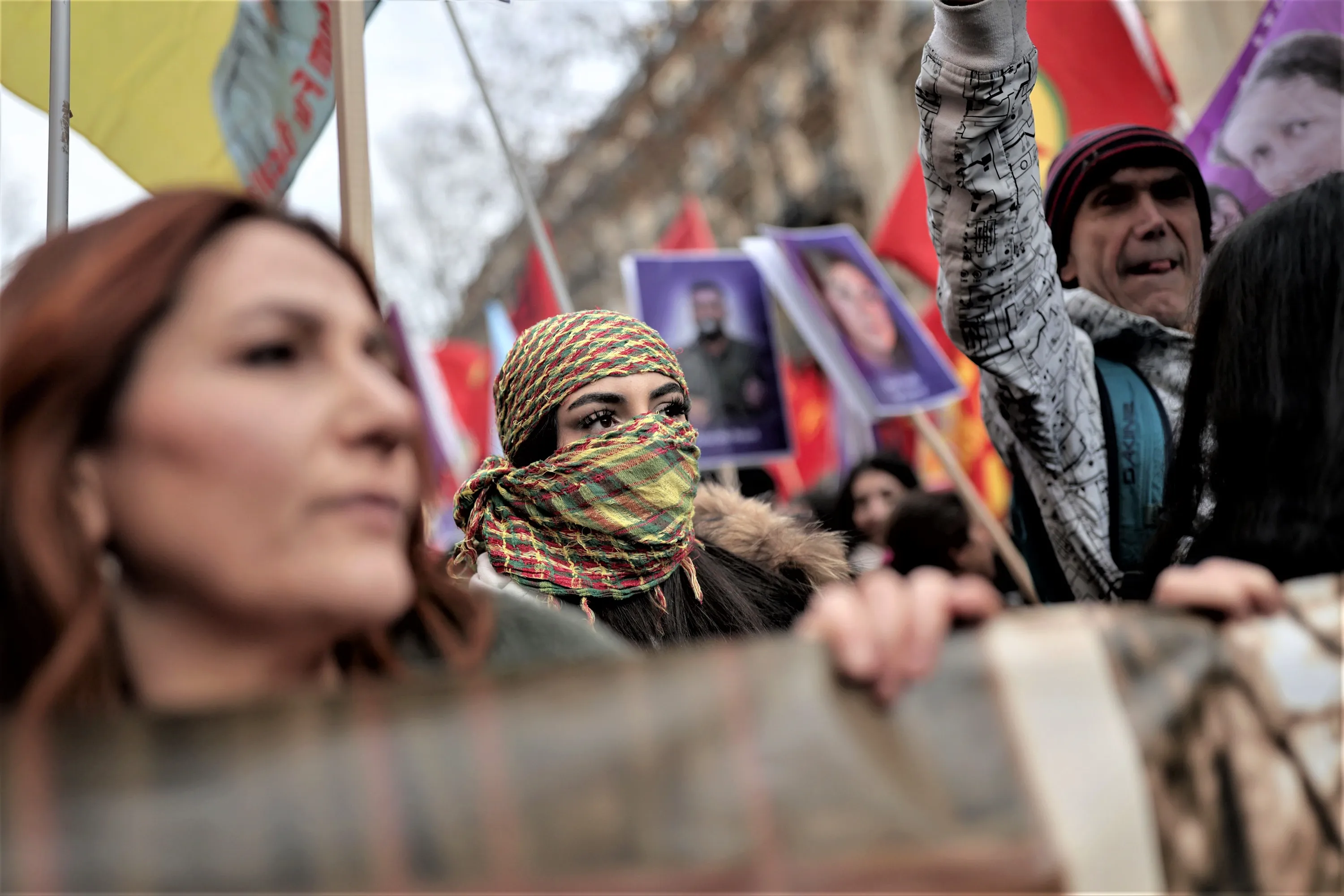 Kurdish activists gather for a march in Paris, Saturday, January 7, 2023. Kurdish groups from around France and Europe are marching in Paris to show their anger over the unresolved killing of three Kurdish women activists in the French capital 10 years ago and also mourning three people killed outside a Kurdish cultural center in Paris two weeks ago in what prosecutors called a racist attack. (Photo by Lewis Joly/AP Photo)