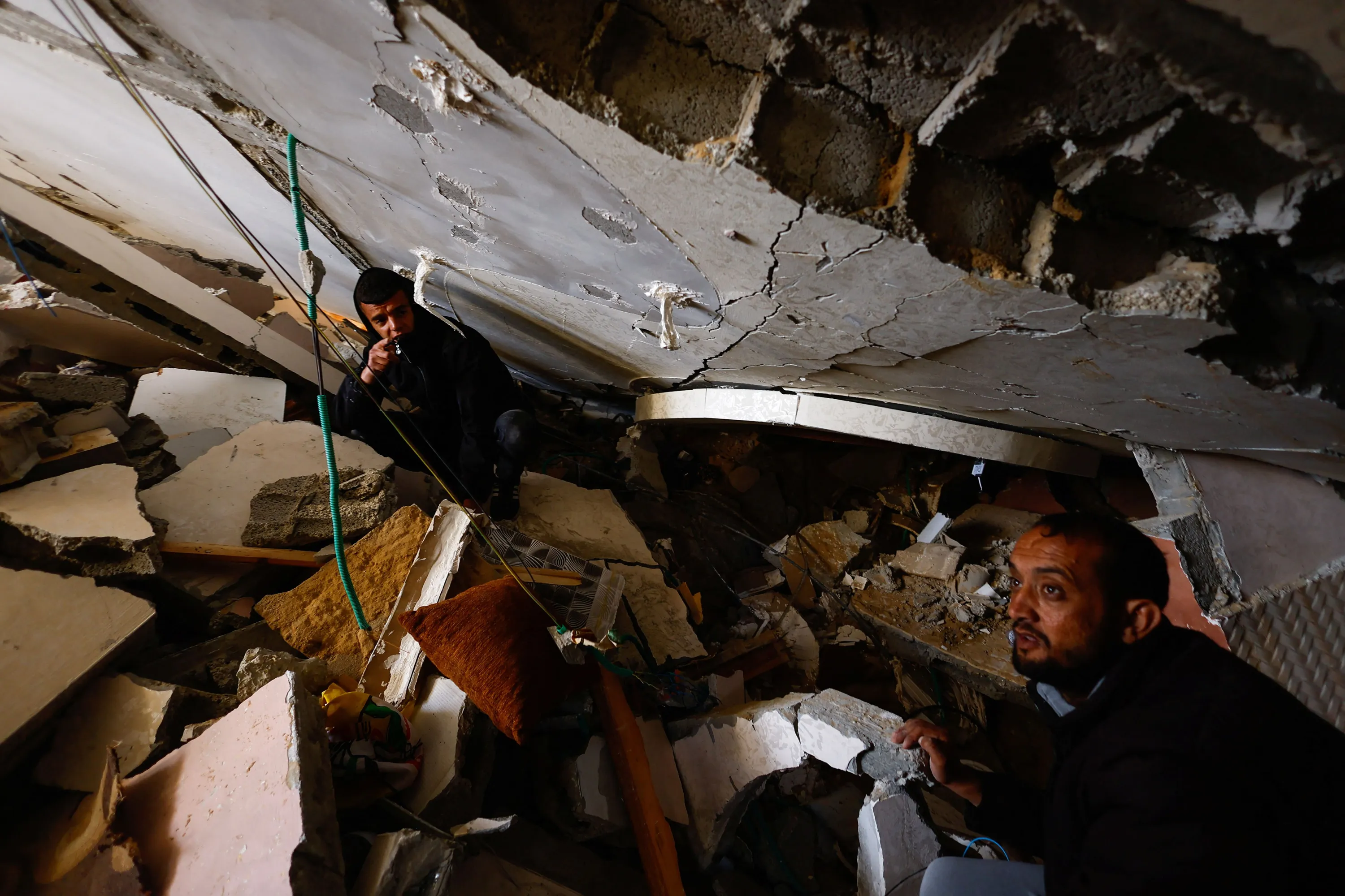 Palestinians inspect the damage following an Israeli airstrike, amid the ongoing conflict between Israel and the Palestinian Islamist group Hamas, in Rafah in the southern Gaza Strip on March 3, 2024. (Photo by Mohammed Salem/Reuters)