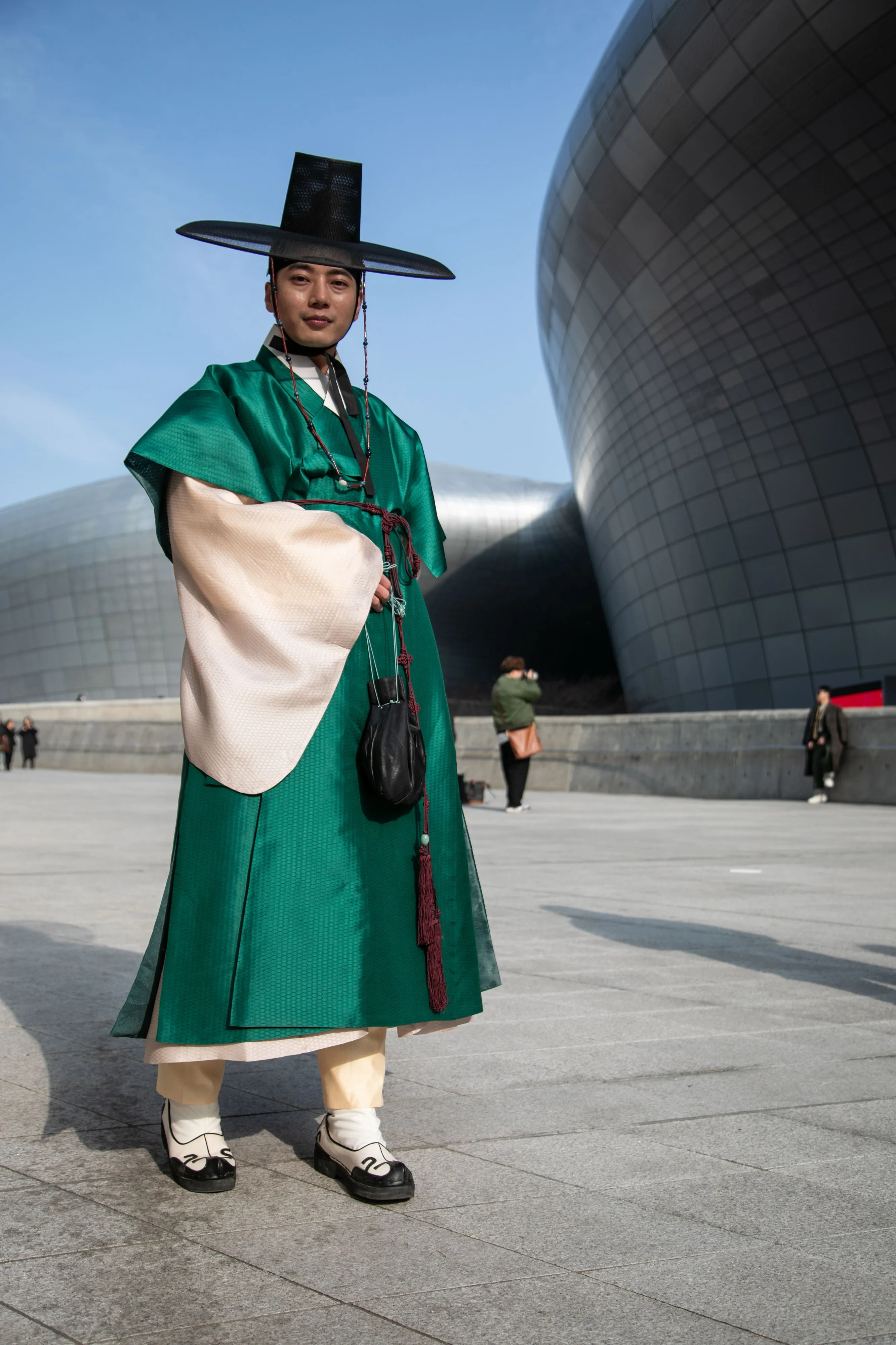 Kim Hyun-jin wears a gat, a traditional Korean hat, and a men's traditional Korean outfit by Yein during Seoul Fashion Week F/W 2024 on February 1, 2024 in Seoul, South Korea. (Photo by Jean Chung/Getty Images)