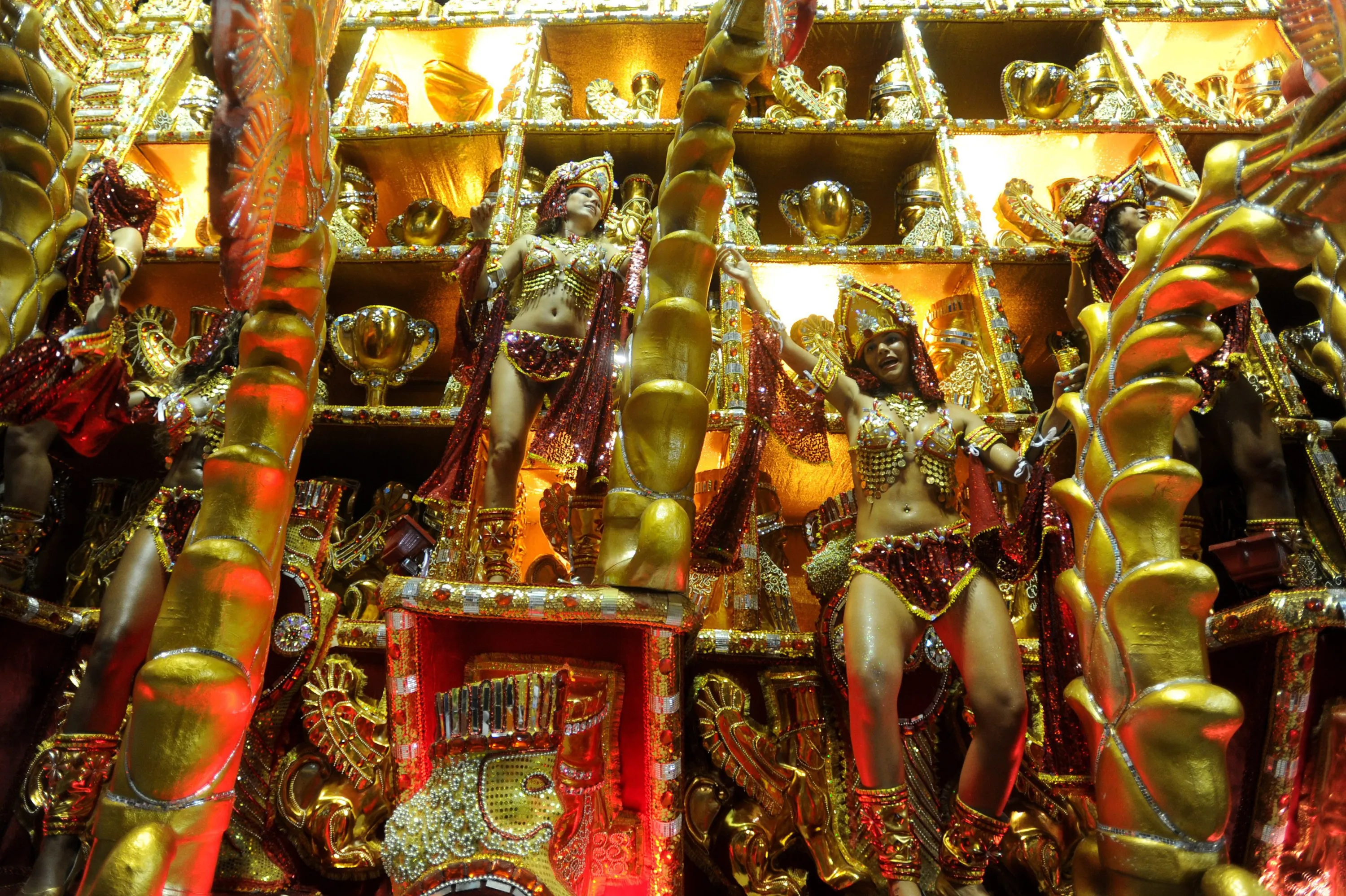 epa03579932 Members of samba school 'Beija-Flor' take part in a parade at the sambodromo of Rio de Janeiro, Brazil, 11 February 2013. The second night of parade of samba schools end the event in Rio de Janeiro. EPA/FERNANDO BIZERRA JR