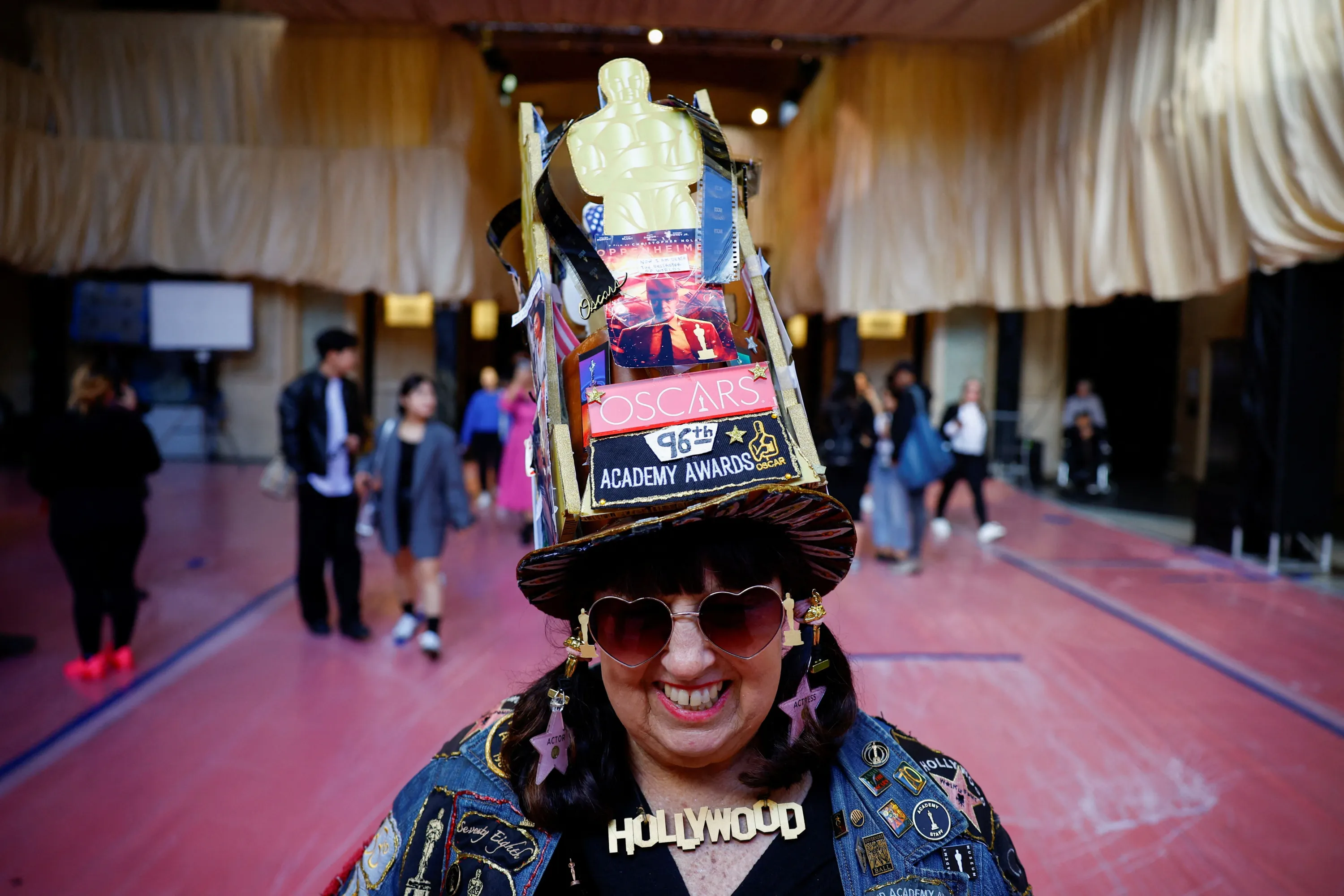 Oscar super fan Vivianne Robinson poses along Hollywood Blvd as preparations continue for the 96th Academy Awards Awards in Los Angeles, California U.S., March 7, 2024. (Photo by Sarah Meyssonnier/Reuters)