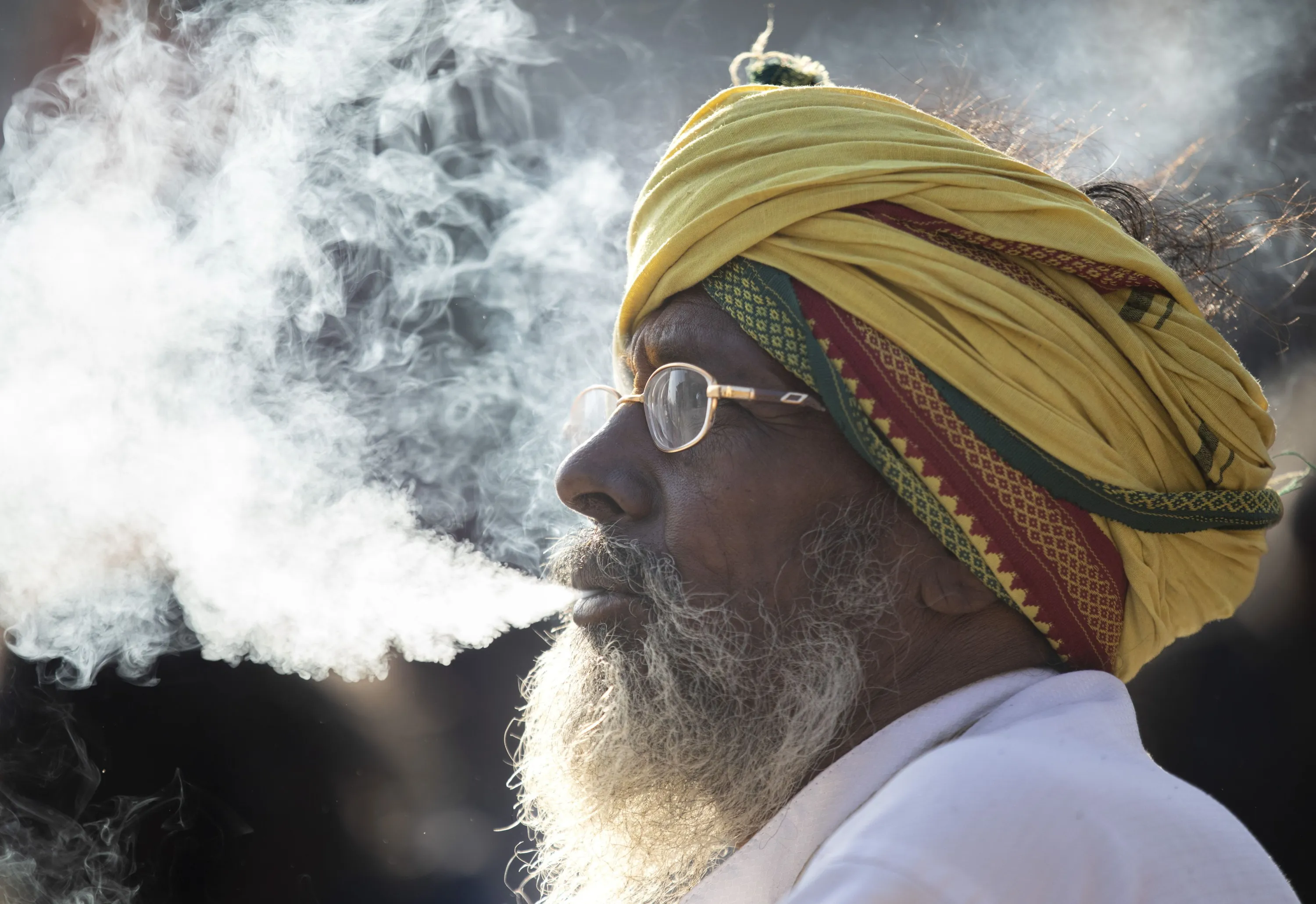 A Sadhu, or Hindu holy person, smokes marijuana from a clay pipe on the Eve of the Maha Shivaratri festival at the Pashupati Temple in Kathmandu, Nepal, 07 March 2024. Mahashivratri is considered one of the most auspicious festivals for the Hindu community. Hundreds of Sadhus and pilgrims from across the country and neighboring India gather to celebrate the birthday of lord Shiva, the god of creation and destruction, by offering special prayers and fasting. Selling Marijuana is an illegal in Nepal, however the administration overlooks selling and smoking Marijuana for this day. (Photo by Narendra Shrestha/EPA)